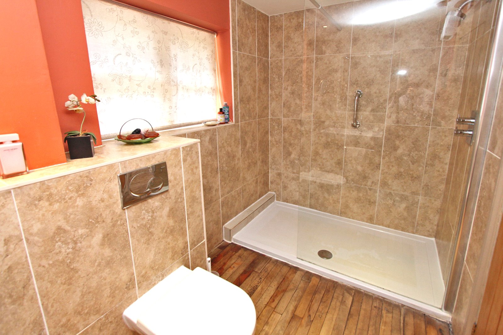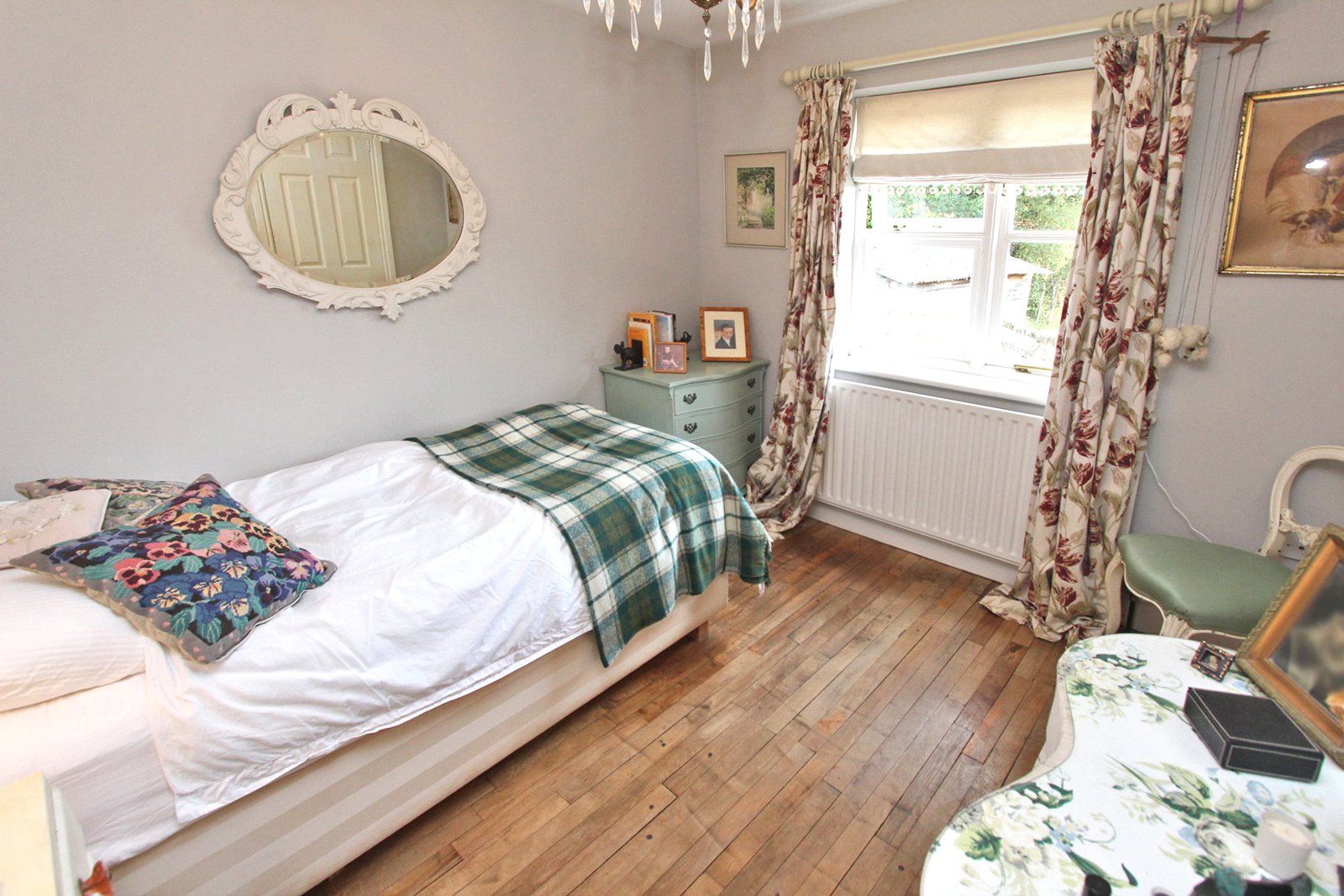 Covered porch with entrance door opens into an 'L' shaped hallway which incorporates and airing cupboard and stairs rising to the first floor. The lovely wooden floor continues around the ground floor of the house. The hallway gives access to both a double and single bedroom with a extremely well fitted good size shower room.