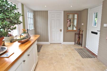 Part glazed door leads to a large rear lobby/boot room with door to front and rear aspects and door to good size cloak/utility room with worksurface to one wall, space and plumbing for automatic washing machine/tumble dryer and Worcester boiler for the central heating and domestic hot water.