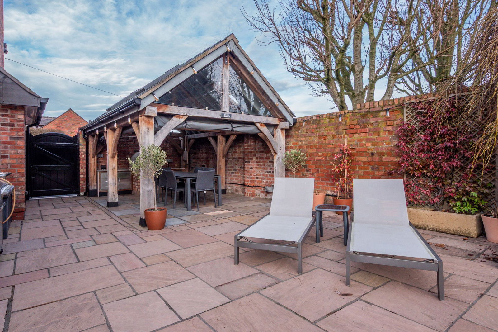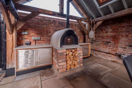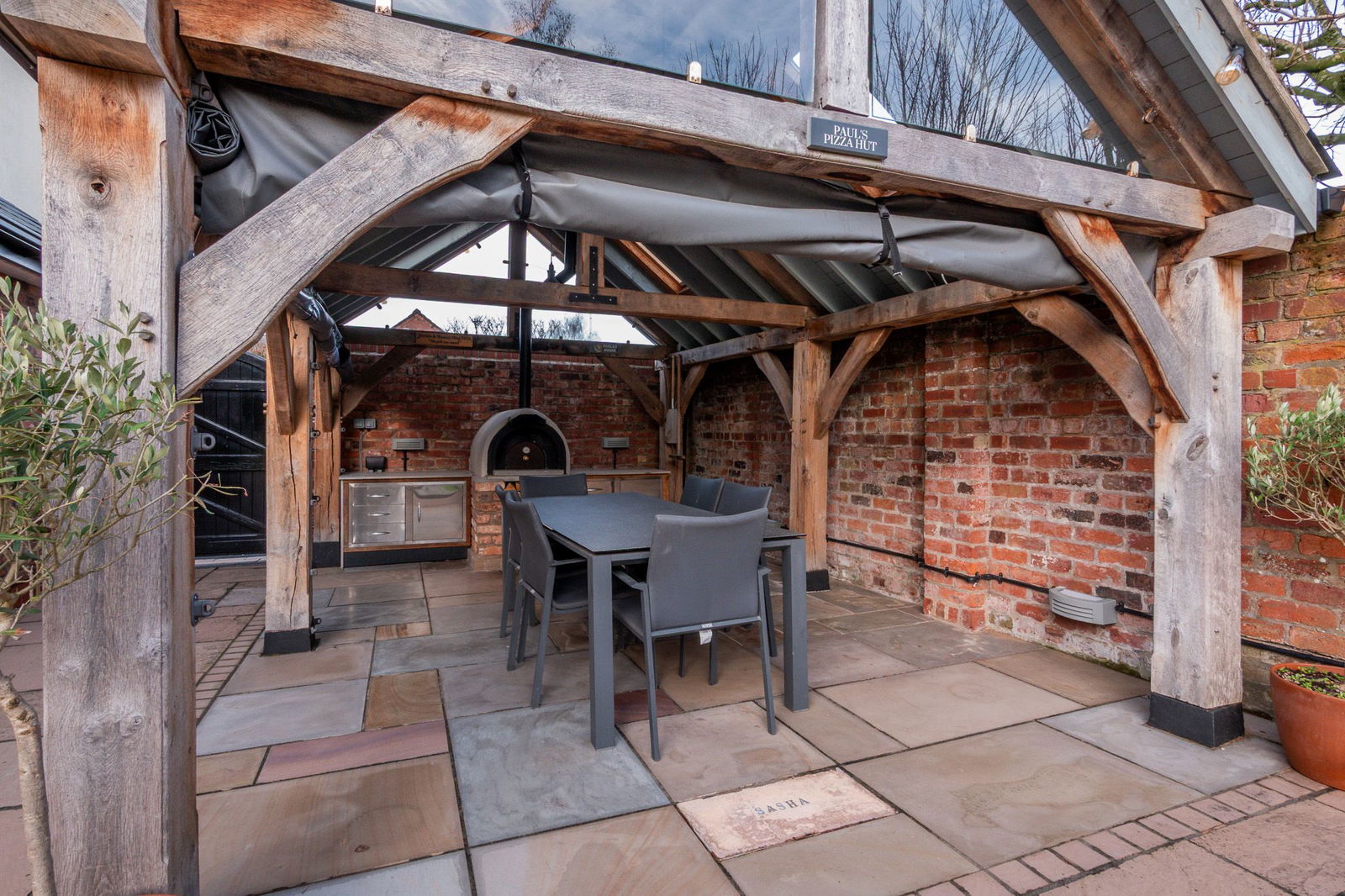 - Stunning oak-framed gazebo, outdoor entertaining area, with pizza oven, outdoor kitchen units, roof windows, and all-weather roll-up panels