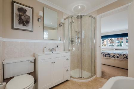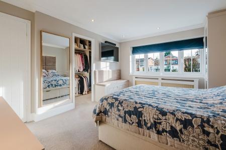 - Principal bedroom with fitted storage, walk-in wardrobe, and a luxury ensuite bathroom
