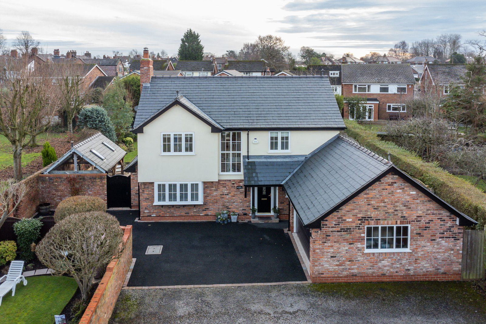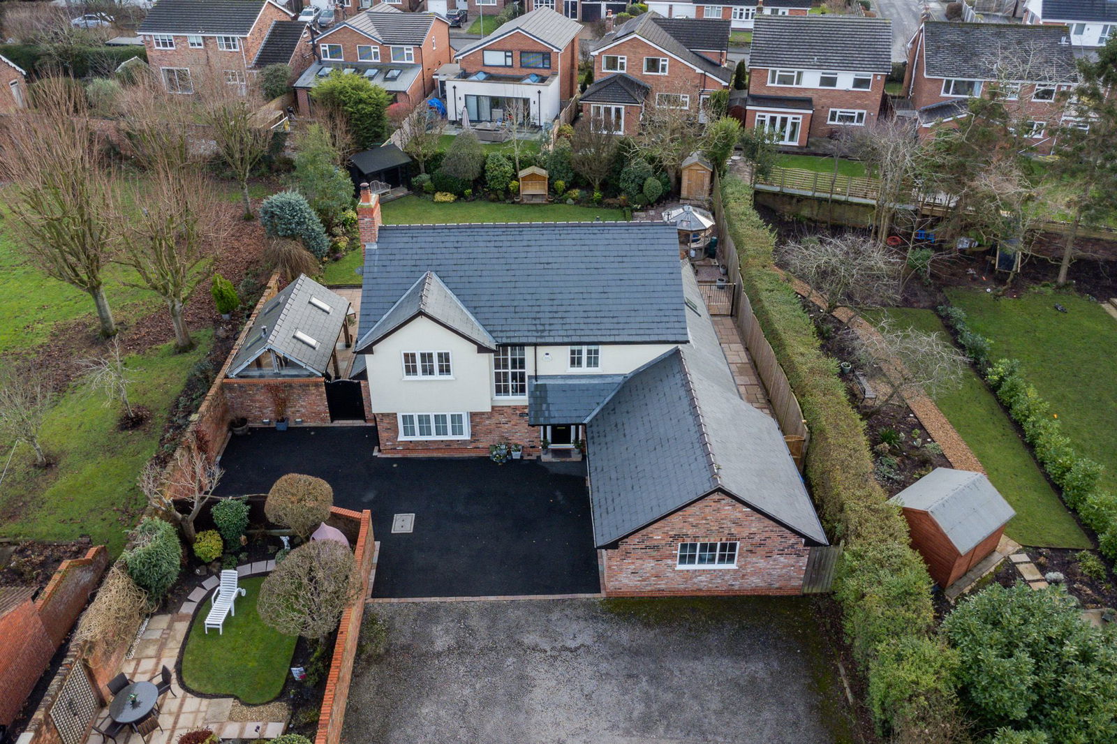 - Detached four-bedroom home situated at the head of a private cul-de-sac a few minutes walk from Lymm village