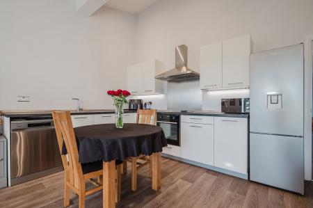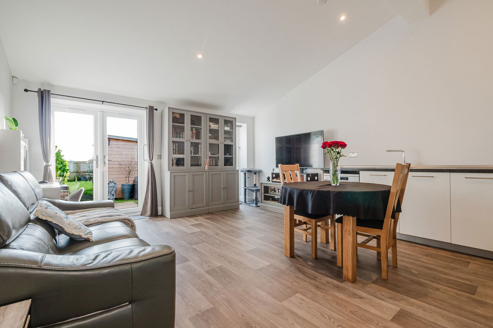 - Open-plan lounge and dining kitchen with French doors to the garden