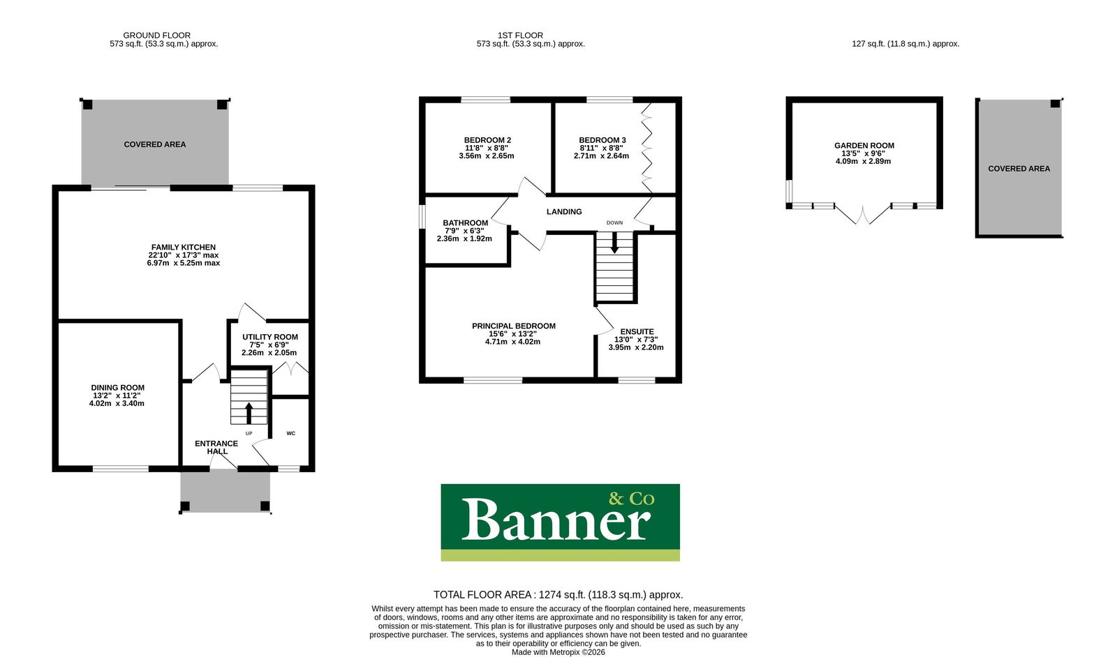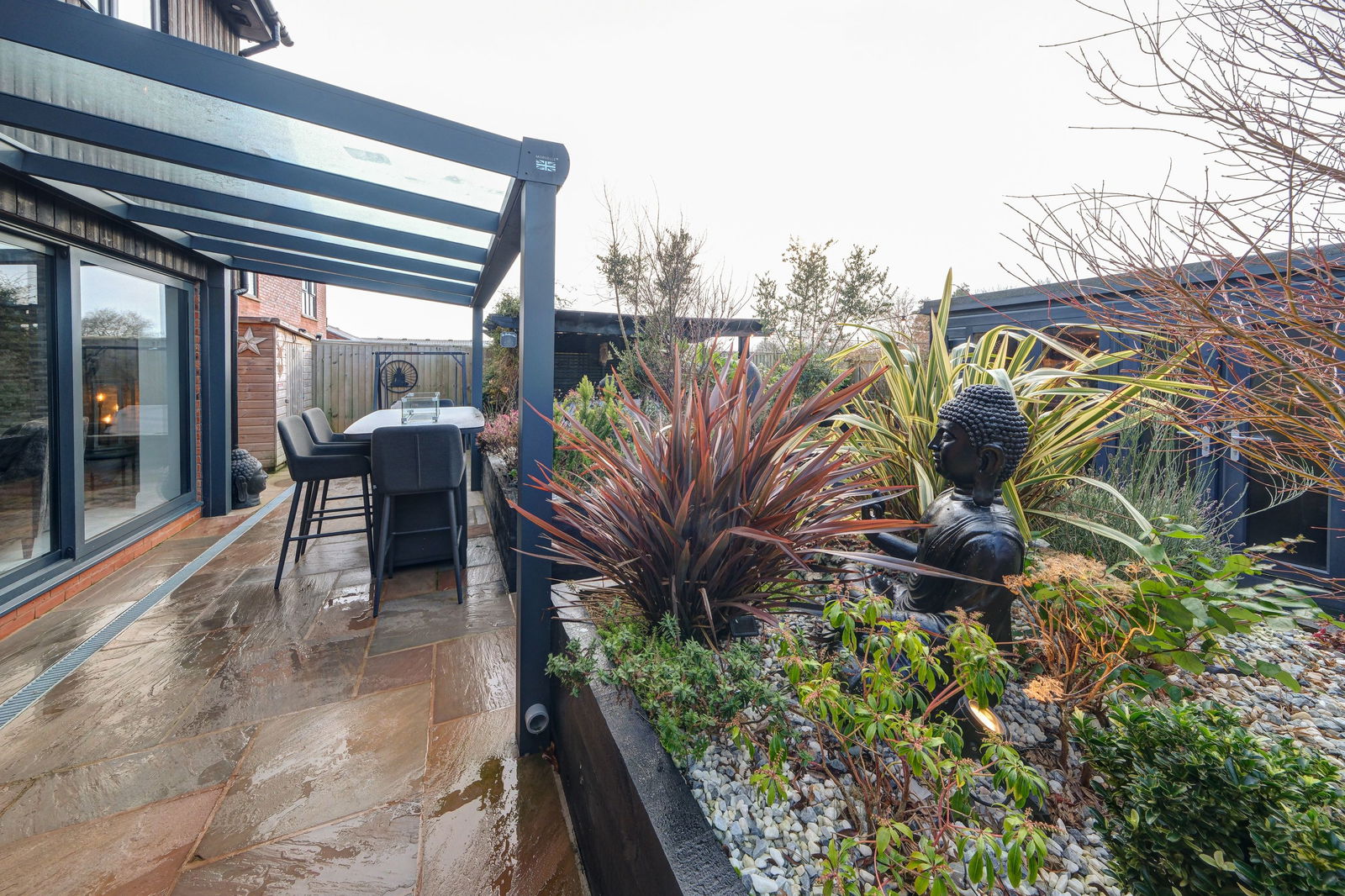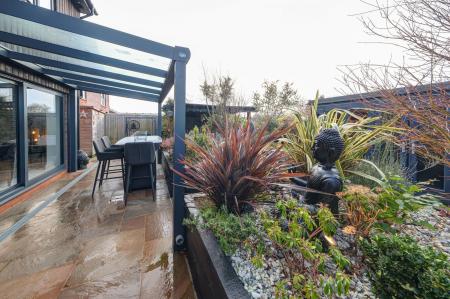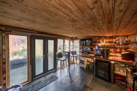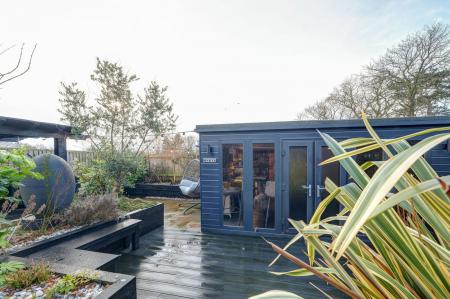 - Landscaped rear garden with composite decking, covered seating areas and garden room
