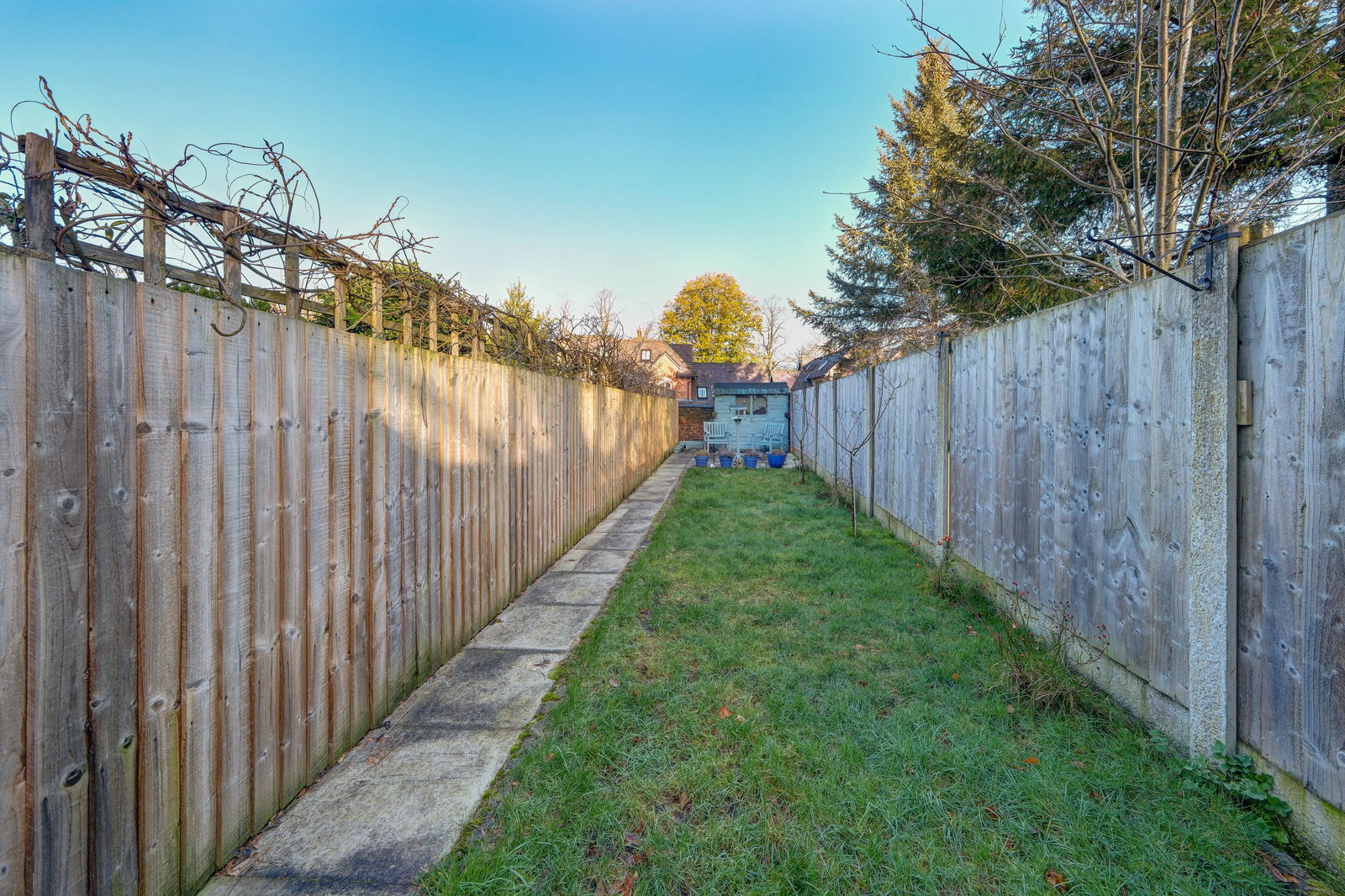- Enclosed rear garden with patios, lawn, and apple trees