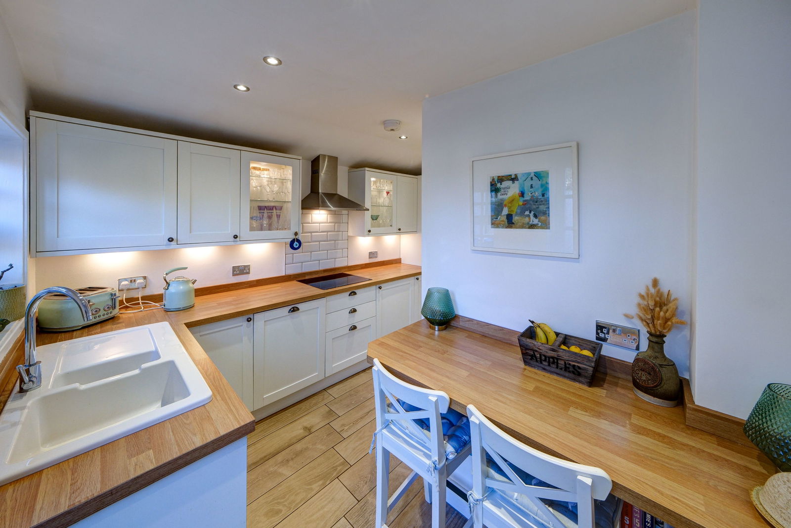 - Well-appointed kitchen with integrated appliances and French doors
