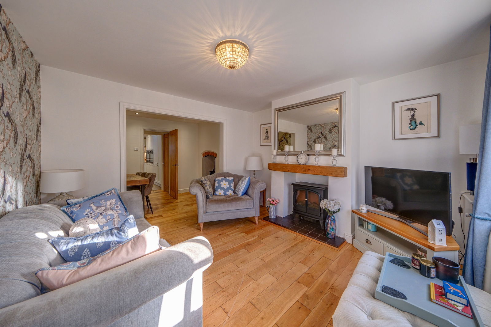 - Open-plan lounge and dining area with feature fireplaces