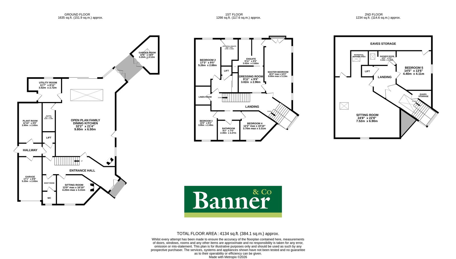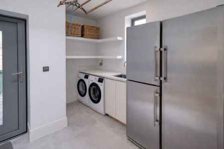 - High-specification kitchen with quartz worktops, premium integrated appliances and walk in larder