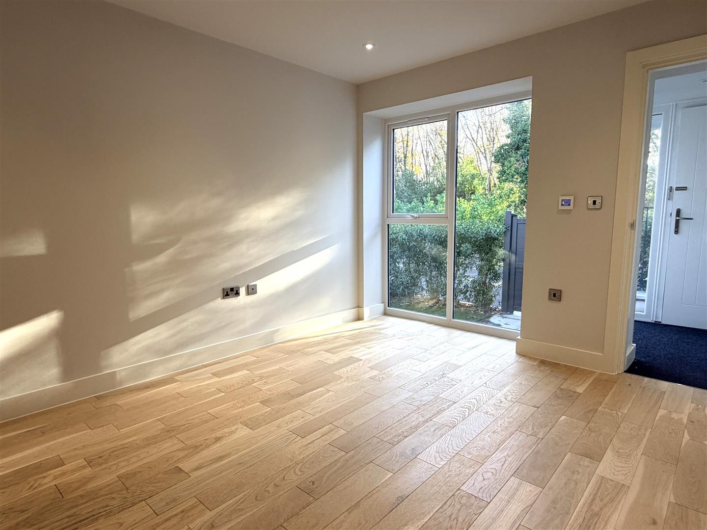 Bedroom Suite One - 3.71m plus reveal x 3.23m (12'2 plus reveal x 10'7 - Principal double bedroom. Double glazed window overlooks the rear courtyard with woodland beyond. Deep display sill and two side opening lights. Television aerial point. New fitted carpet with underfloor heating. Inset ceiling spot lights. Door leads to the En Suite.
