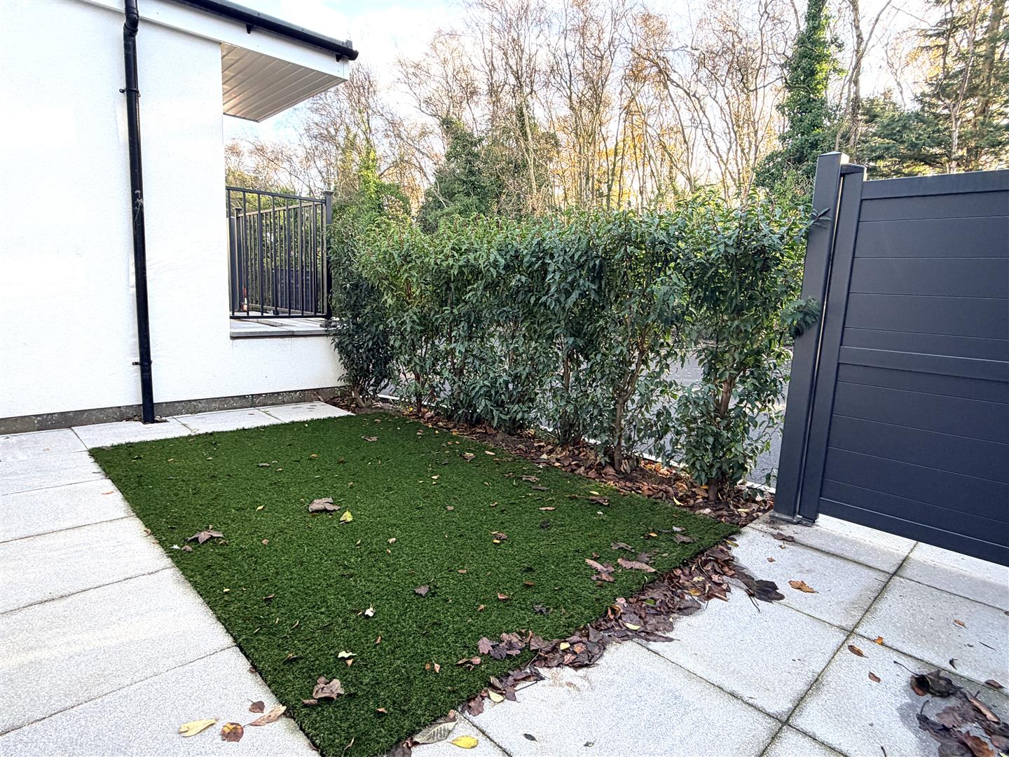 Private Self Contained Entrance - Covered open elevated entrance with stone flagged steps and a wrought iron balustrade and hand rail. External wall mounted coach light.