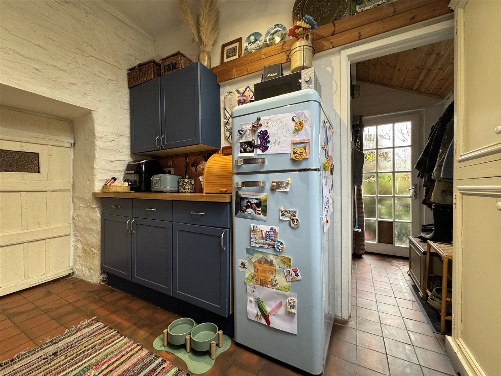 Rear Hall with quarry tiled floor, electric panel heater and doors to