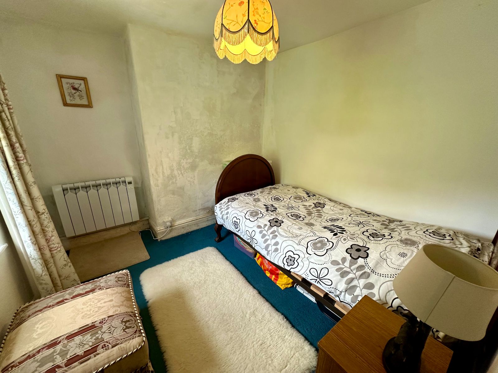 Window to side, electric heater, airing cupboard, carpet.