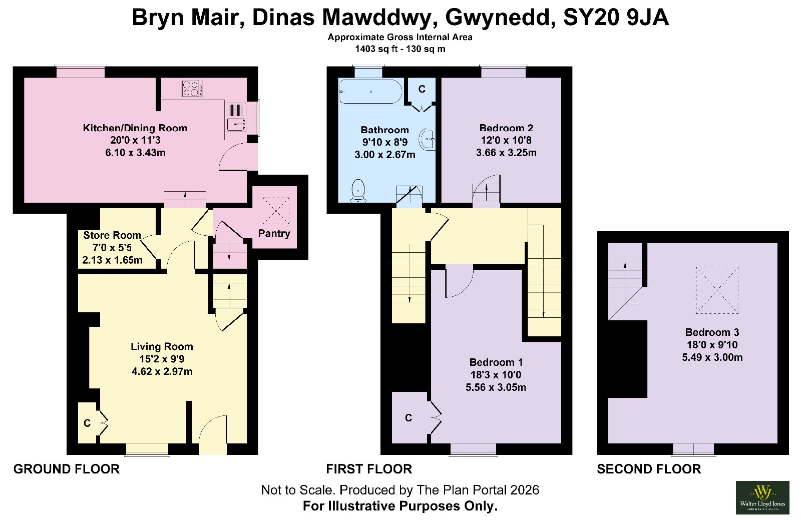 Bryn Mair is a mid-terrace, three-bedroom property arranged over three floors, situated in the heart of the village of Dinas Mawddwy. The rear-facing rooms enjoy attractive views over open countryside and towards the Afon Dyfi.