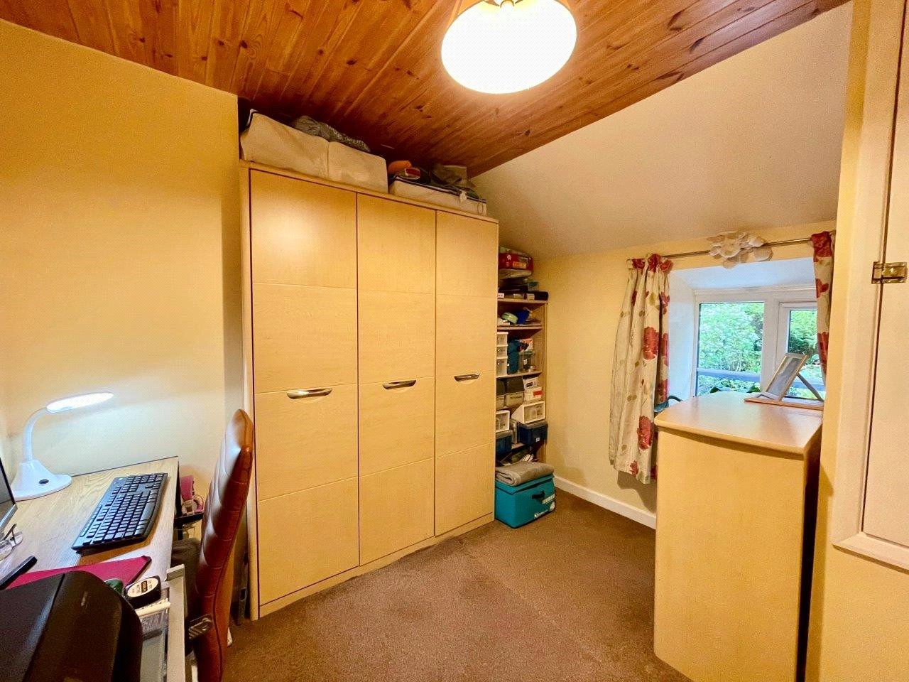 Bedroom 2 (9'4 x 8'10 max); shelved linen cupboard, storage heater.