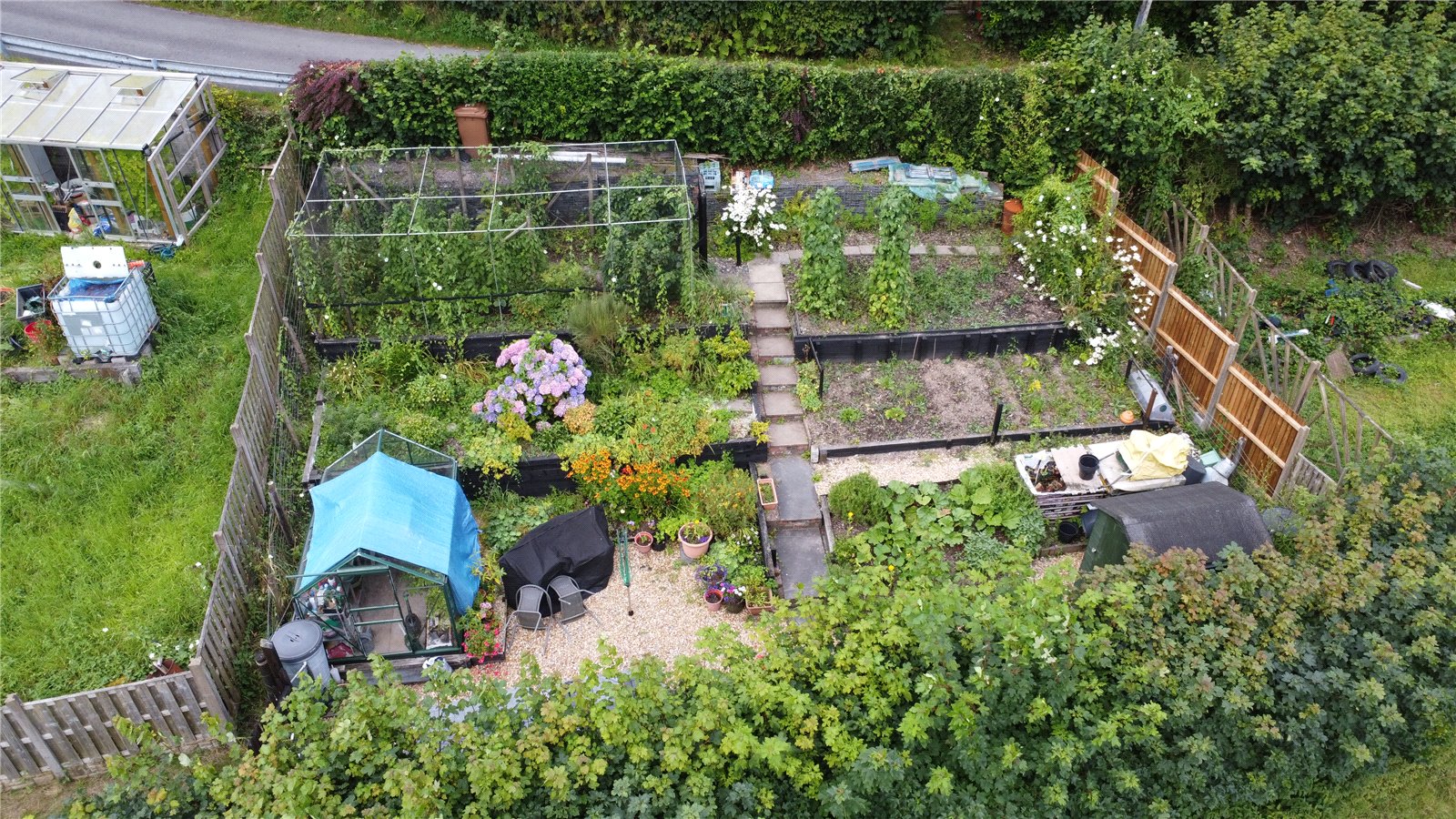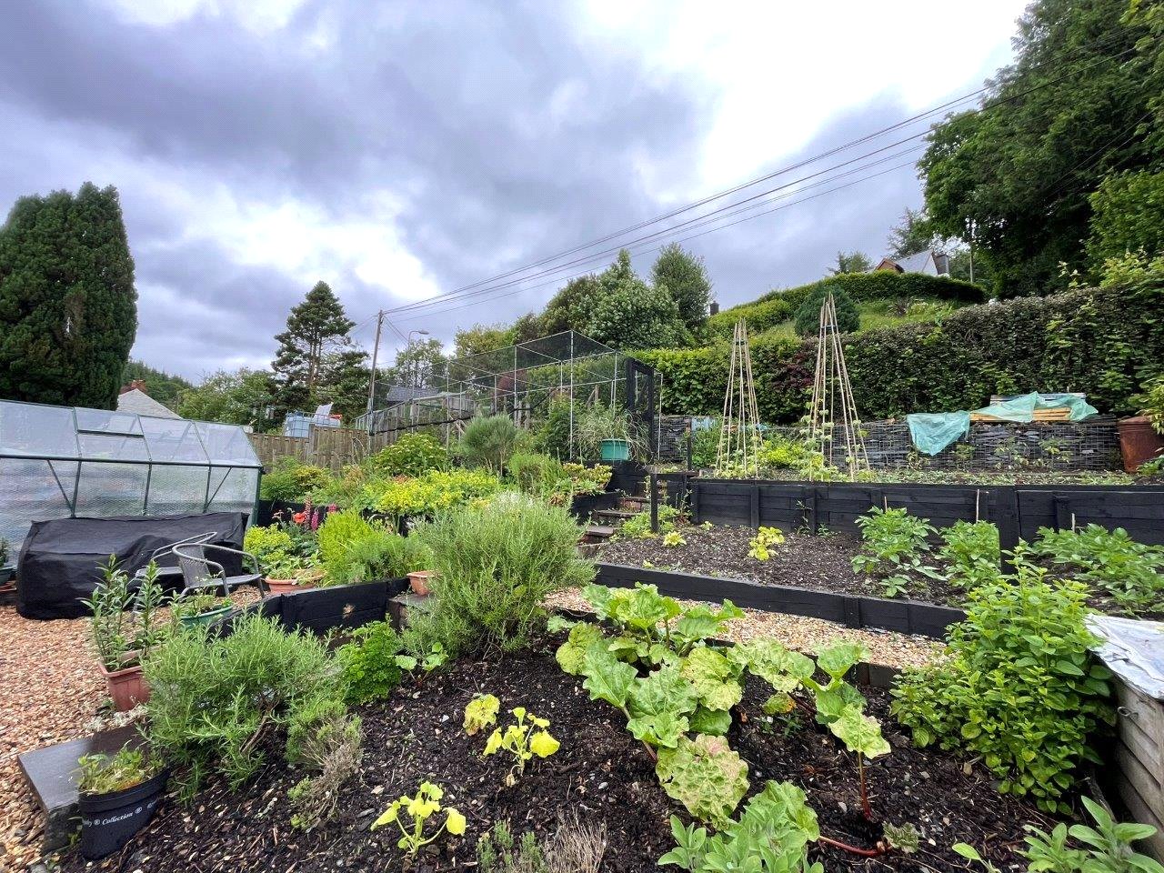 To the front of the property is a shallow seating area with good unspoilt rural views. Wicket access to common path leading to detached garden. Very productive and mainly set out with raised terraced beds set to vegetables. Soft fruit area. Garden Shed and alloy framed 8' x 6'9 Greenhouse. To the rear is a pleasant rose garden, metal shed and above is a tarmacadamed parking bay with substantial Garden Store 11'6 x 9'6, a former stable with mezzanine floor over. Behind this is a further cottage garden area.
