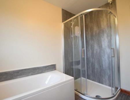 Front facing double bedroom. TV point. Carpeted. Dressing area with dual wardrobes. WC with WHB, tiled wall (2.4x1.3)Bathroom2.9m x 2.4m (9' 6" x 7' 10")