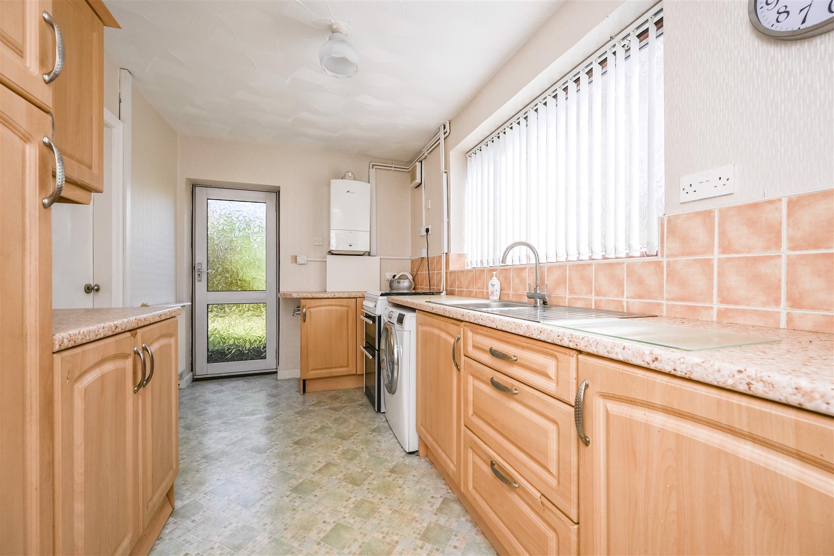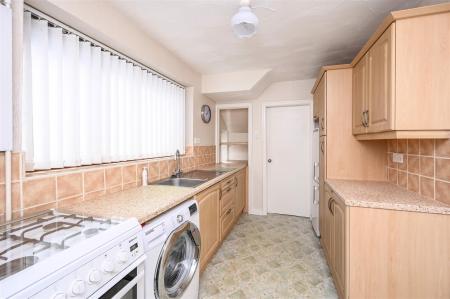 Kitchen - 12' 5'' x 7' 8'' (3.78m x 2.34m) - inset stainless steel sink unit with drainer, base and drawer units with worktop surfaces over, wall units, space for gas cooker, plumbing for washing machine, Worcester gas central heating boiler, two double glazed windows to side, door to rear garden
