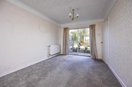 Living Room/Dining Room - feature fireplace with gas fire, two radiators, double glazed front window, double glazed patio door to rear