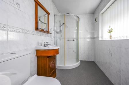 Ground Floor Shower Room - corner shower cubicle with Triton electric shower, wash hand basin with vanity unit, low level w.c, tiled walls, heated towel rail, double glazed window