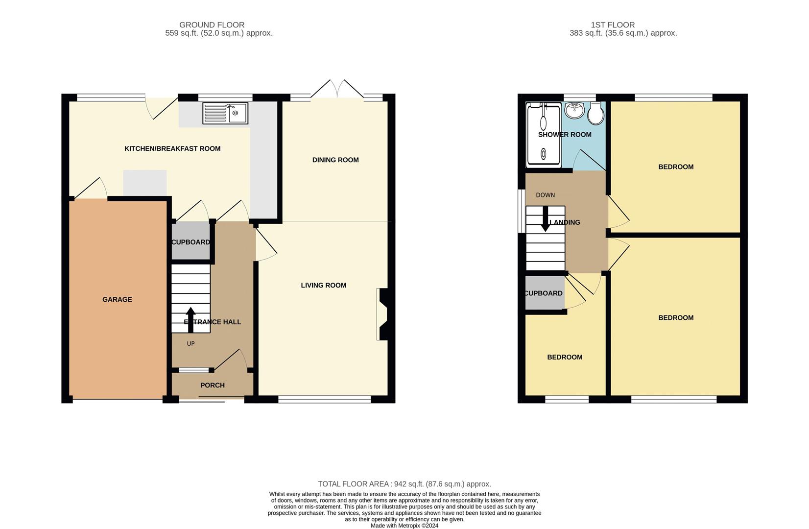 - Three bedrooms