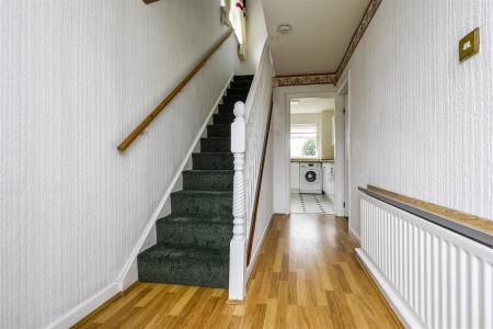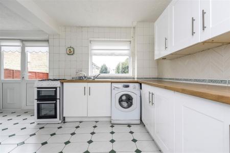 Kitchen/Breakfast Room - inset stainless steel sink unit with drainer, base and drawer units with worktop surfaces over, wall units, space for gas cooker, plumbing for washing machine, under stairs cupboard, two double glazed windows, door to garage, double glazed door to rear garden