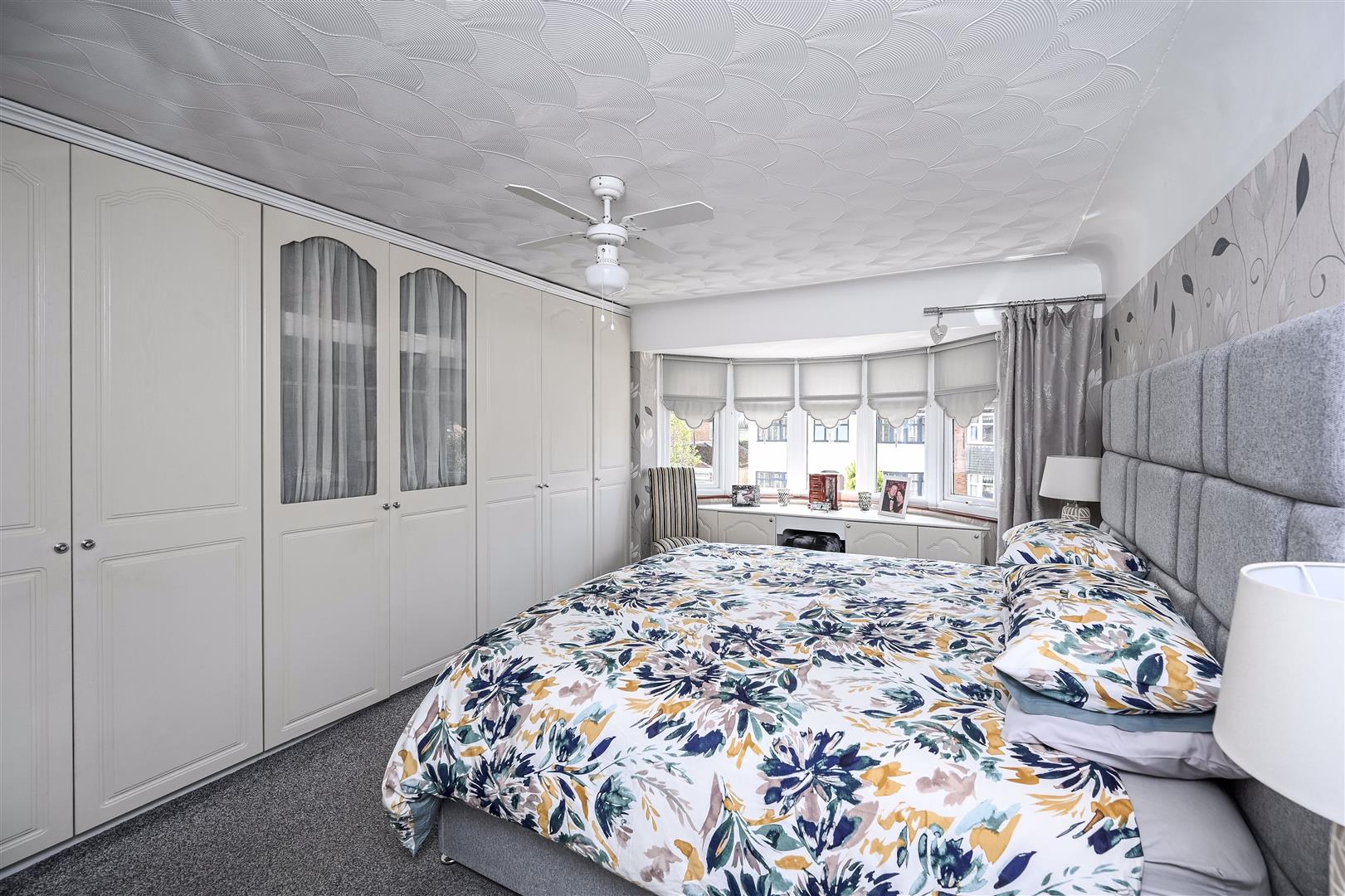 Front Bedroom 1 - fitted wardrobes and dressing table, radiator, double glazed bay window