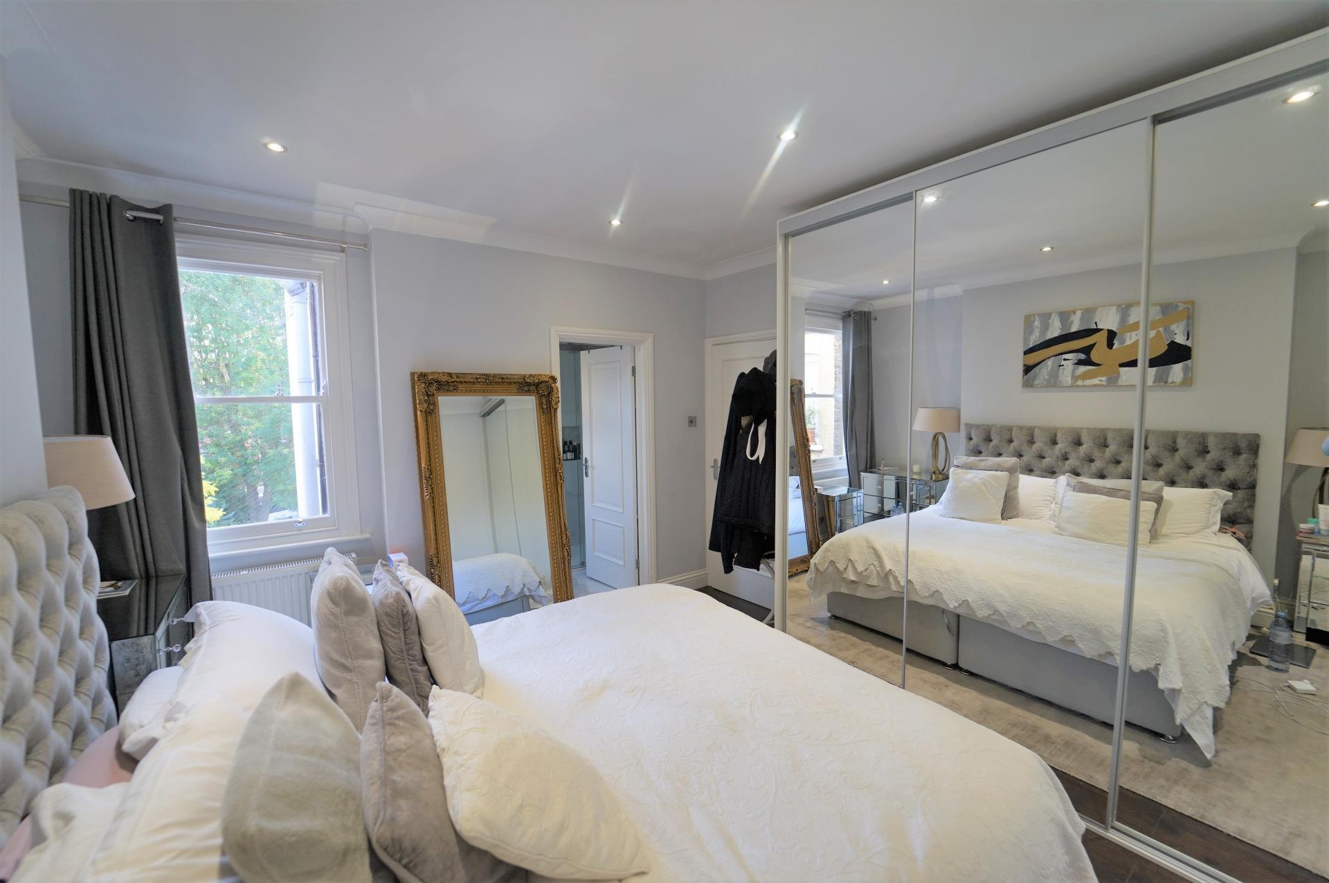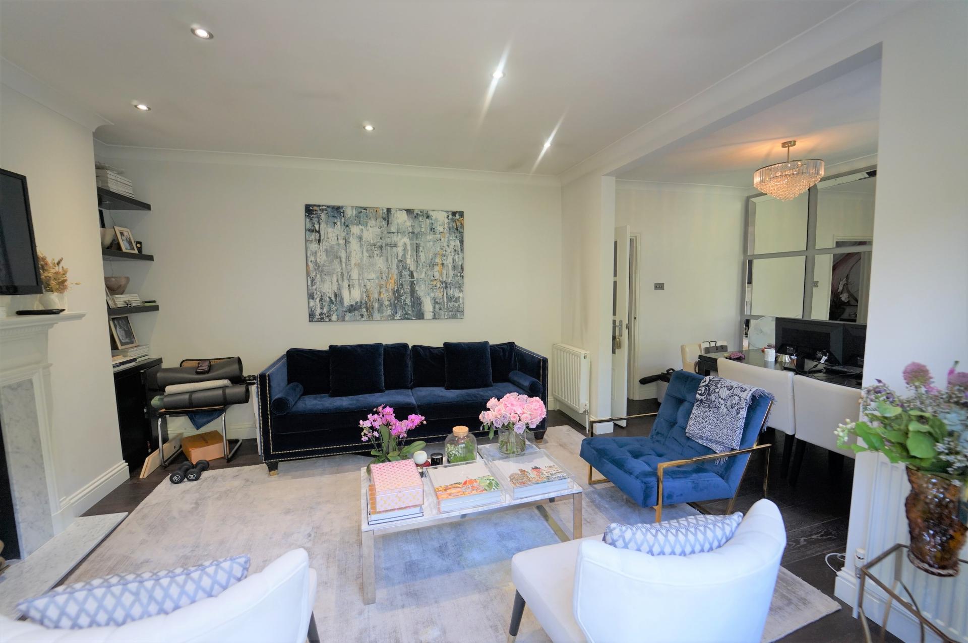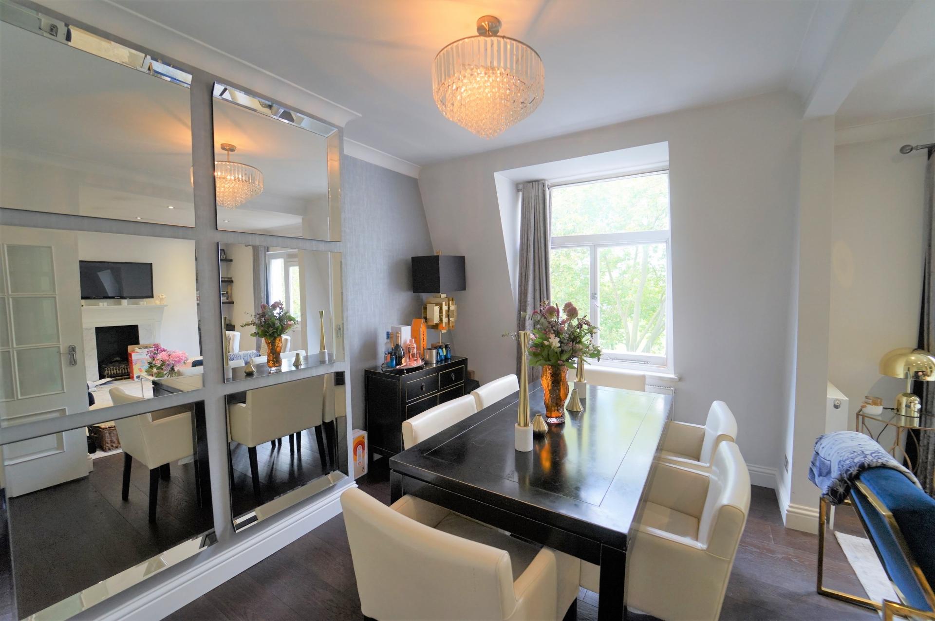 The apartment comprises of three double bedrooms, two bathrooms (one en-suite one family bathroom) large eat-in fully fitted kitchen with inter-grated appliances, and a spacious, light reception room and dining room with wood floors and views over the park. Perfect for entertaining.
