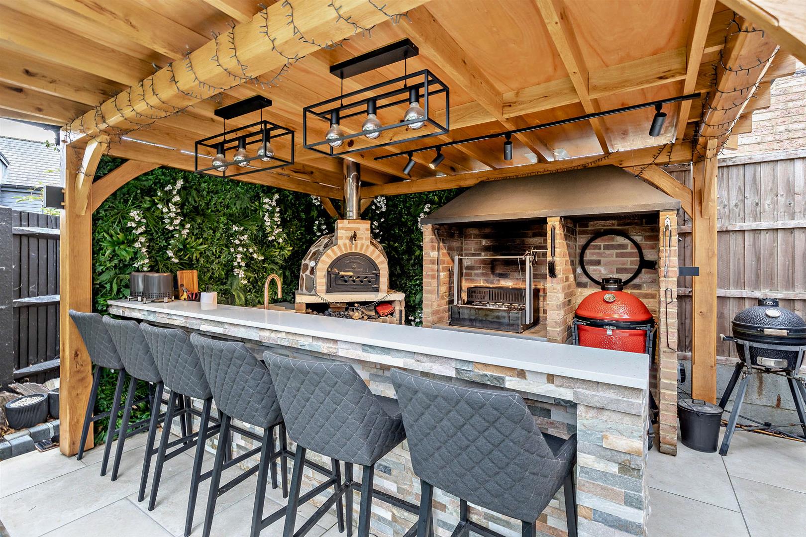 - Garden featuring outdoor kitchen area