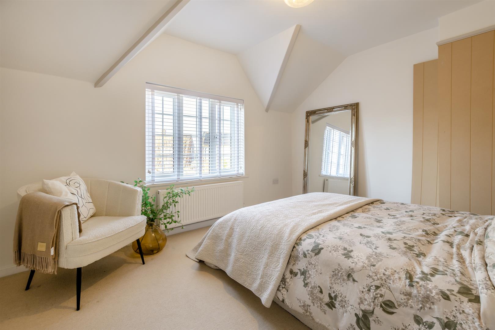 To the first floor, there is a modern family bathroom and two well-proportioned bedrooms, with the principal bedroom benefiting from two built-in single wardrobes.