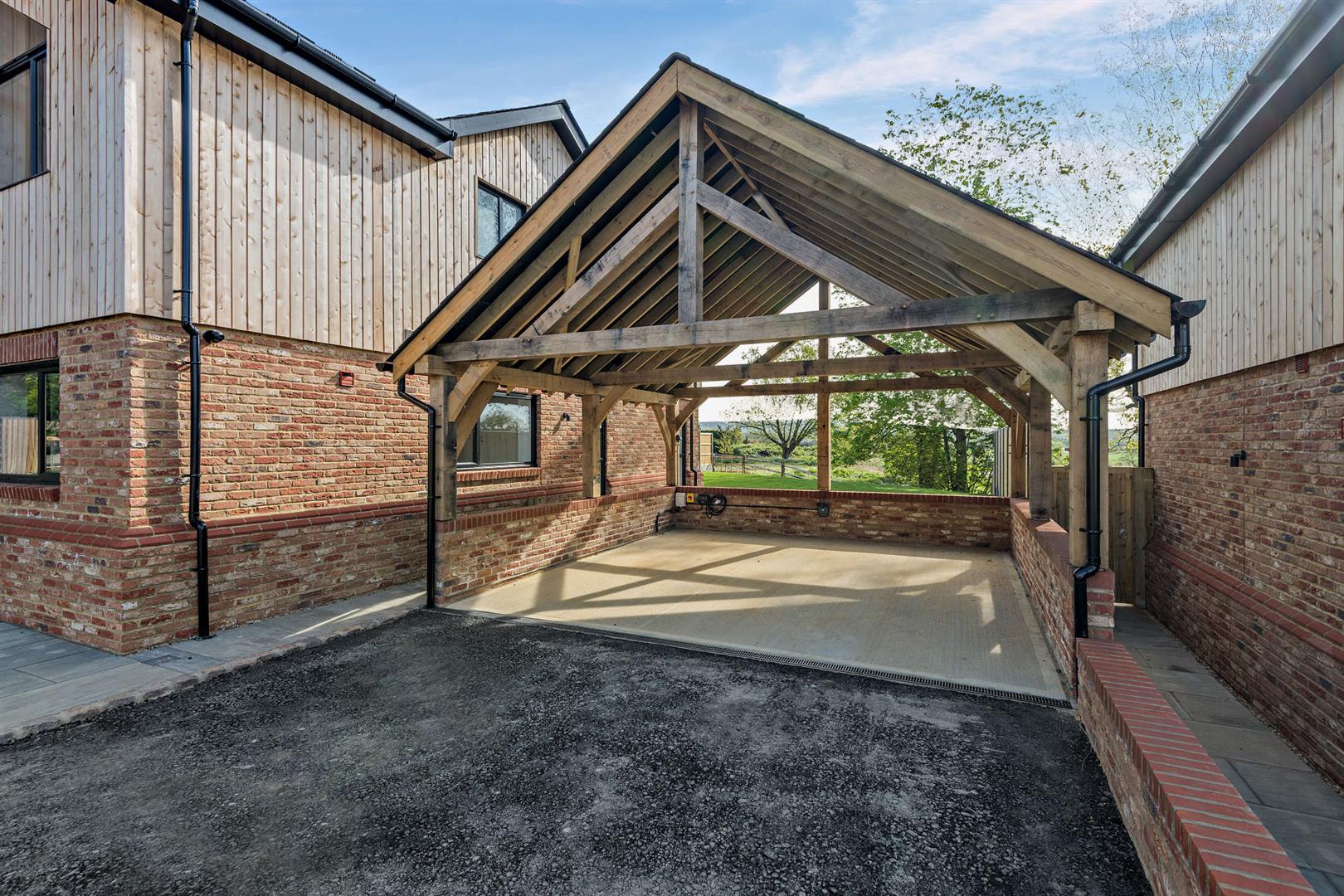 - Driveway parking and detached oak barn carport with EV charging