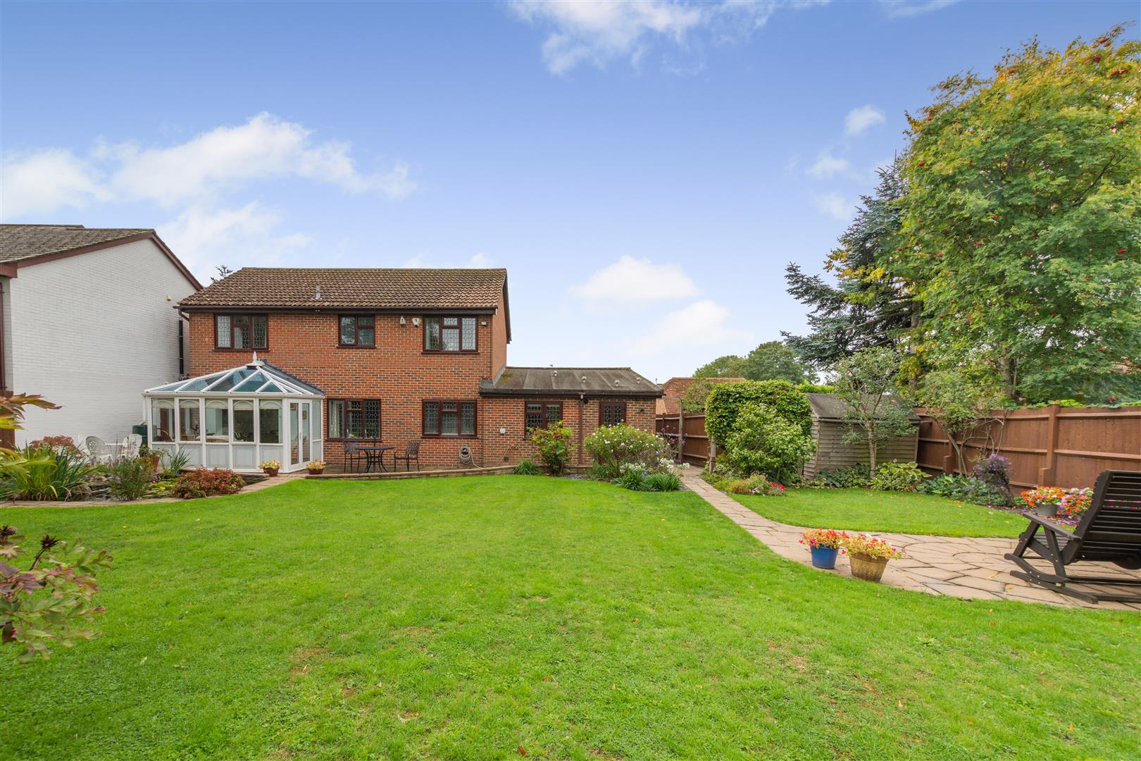 Outside you will find a magnificent garden with an abundance of lawn, mature beds and patio space. offering several seating areas the experience all day sunshine. This house provides a driveway allowing for several vehicles spanning across the front of the house and the double garage adds to the prestige of this home. Additional benefits include alarm and CCTV.