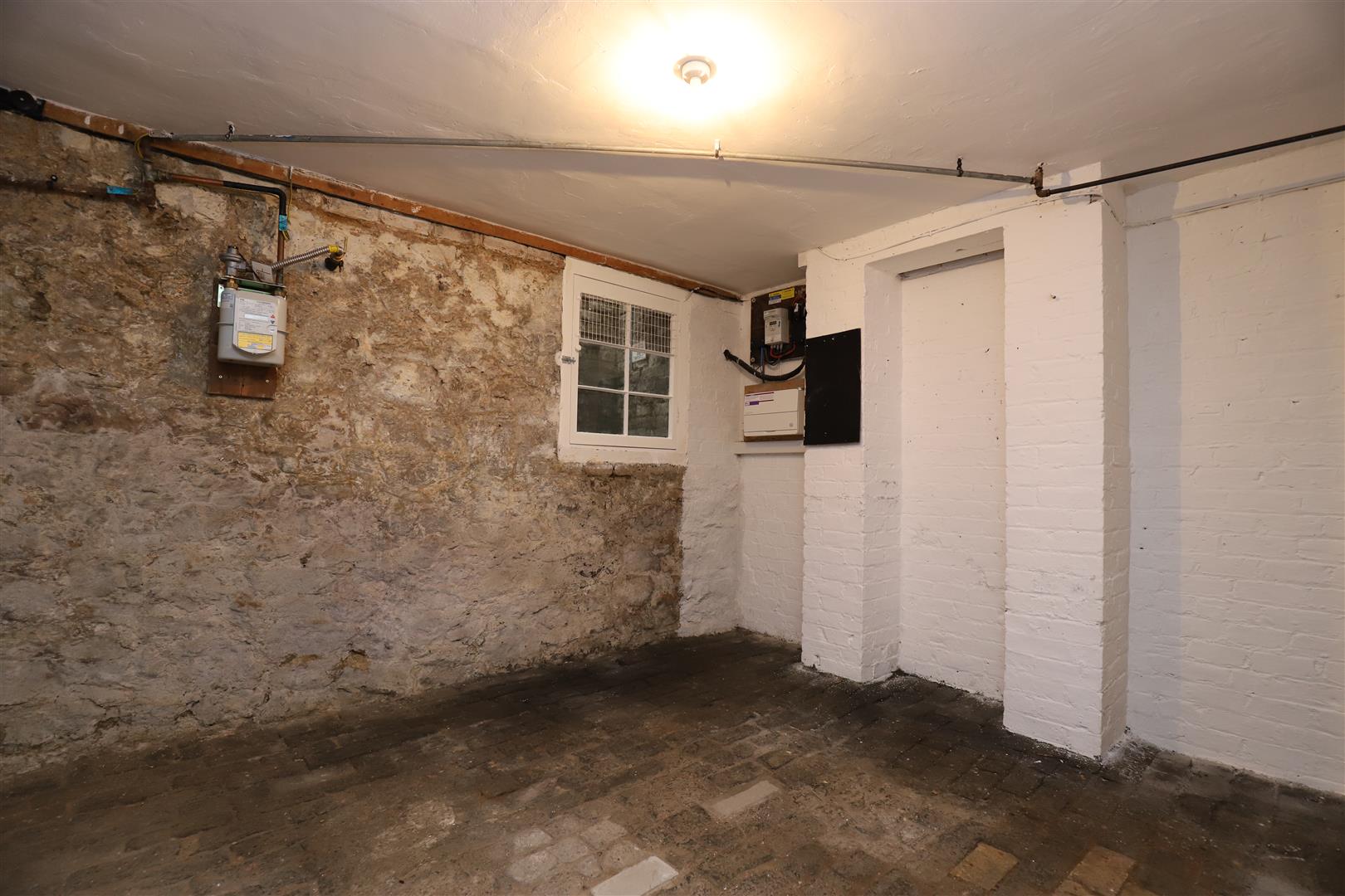 Cellar - Divided into two chambers with central staircase and offering good ceiling height. Gas and electric meters.