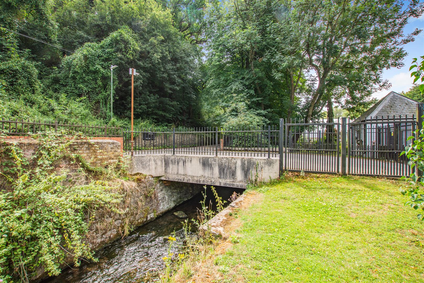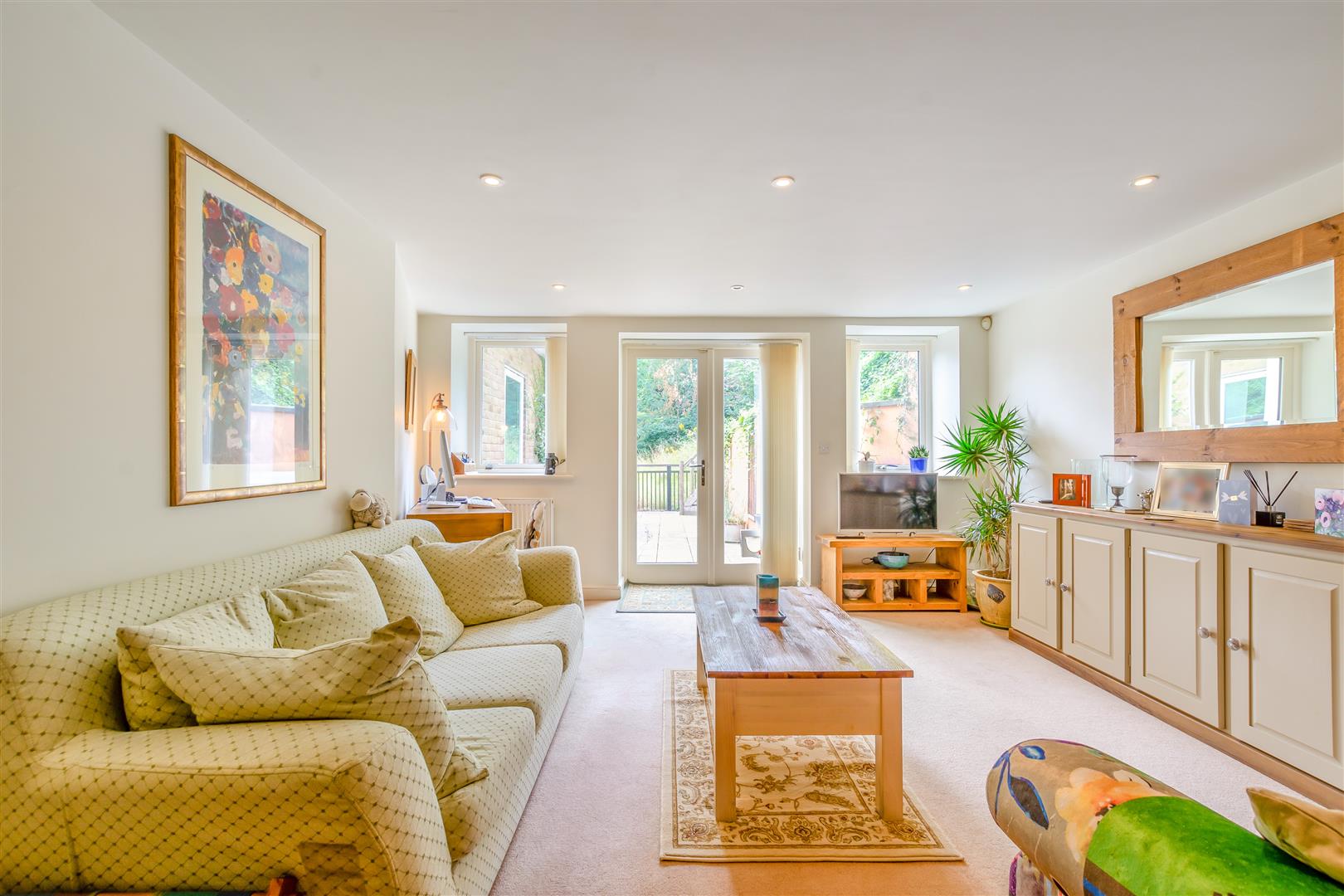 The entrance hall leads through a door opening onto a modern open-plan kitchen and dining area that flows seamlessly into the lounge. French doors from the lounge open onto a private, low-maintenance garden - thoughtfully arranged with a paved patio area. From here, steps lead up to a raised timber deck that enjoys elevated views over the mill pond and surrounding woodland, creating a truly tranquil setting in which to dine, relax and unwind.