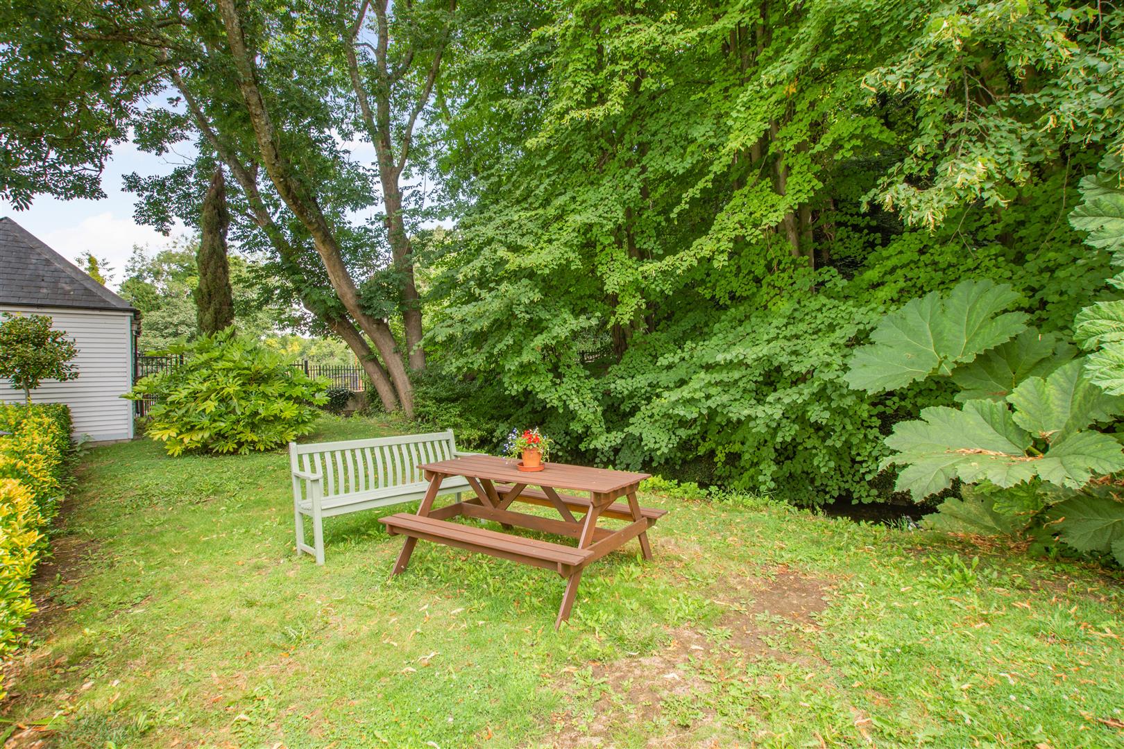 It's set in a leafy wooded area which totally belies the proximity of supermarkets, the town of Maidstone and the noise of traffic. You can sit on the decking in the warmer months and watch the sun setting while dragonflies hover over the pond and its waterfowl.
