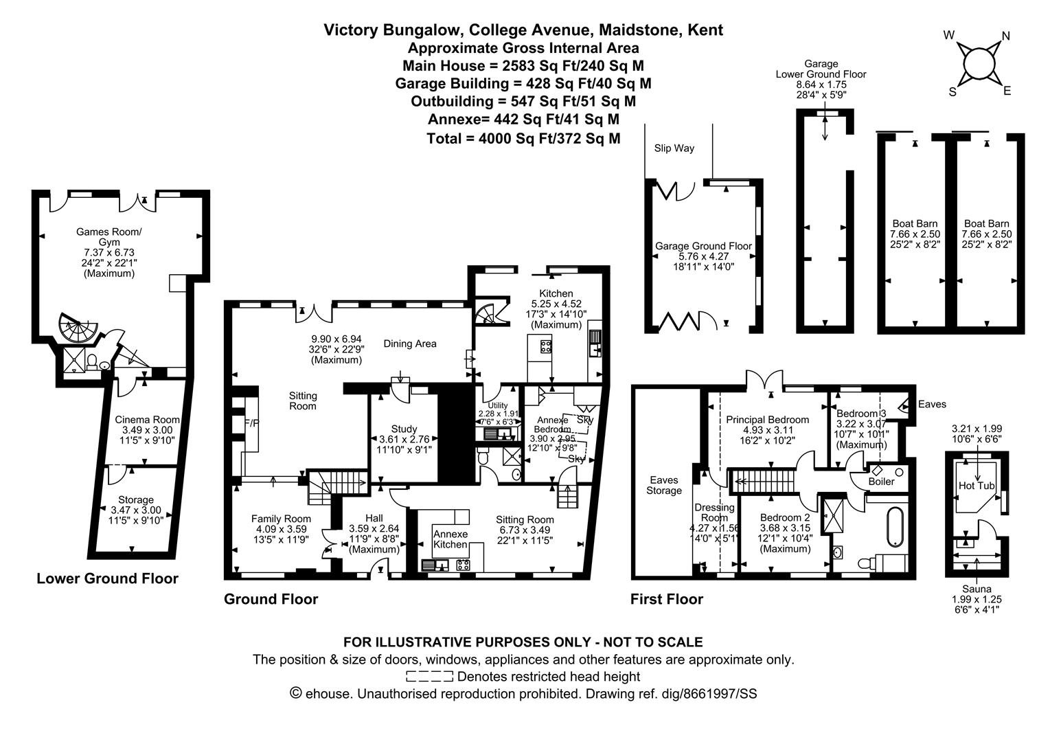 Page & Wells are delighted to bring to market this wonderful home with accommodation appointed over three levels which presents an excellent opportunity for the next buyers. In its current configuration, the lower ground floor features a games room/gym, shower room, cinema room and ample storage. The ground floor features a family room, open plan sitting/dining room, study and a large kitchen. In addition, there is annexe accommodation on this level which provides a sitting room with kitchenette, separate bedroom and shower room. On the first floor, the principal bedroom benefits from a large dressing room, two further double bedrooms and a large family bathroom. Externally, there is ample off-road parking, garaging and redundant boathouses. Additionally, there is a swimming pool, large terrace, sauna and hot tub. The sizeable plot extends all the way down to the River Medway, which can provide a range of leisure activities such as boating, fishing and kayaking. All in all, this really does provide a one-off opportunity to purchase a home offering such versatility in a prestigious location, close to the town centre. Contact PAGE & WELLS King Street Office on 01622 756703. Tenure: Freehold. EPC Rating: E. Council Tax Band: F.