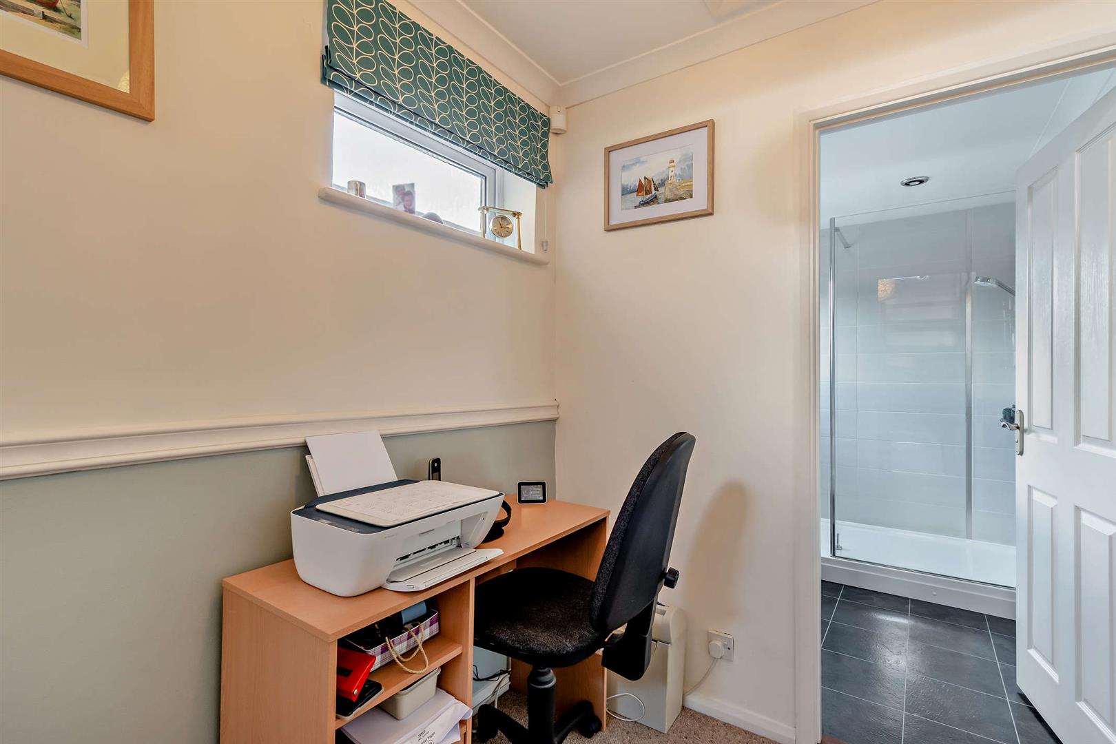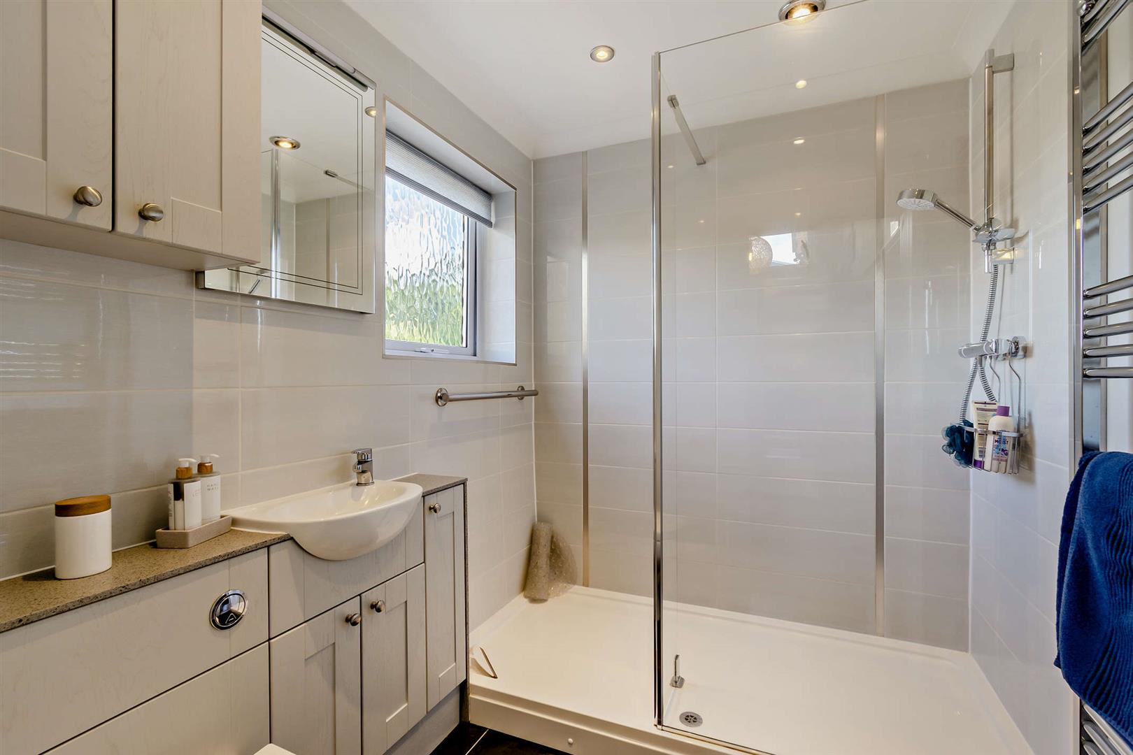 Externally, the south east-facing rear garden wraps around the property, offering both sunlight and shade whenever desired. Access to the large double garage is also available from the rear garden.