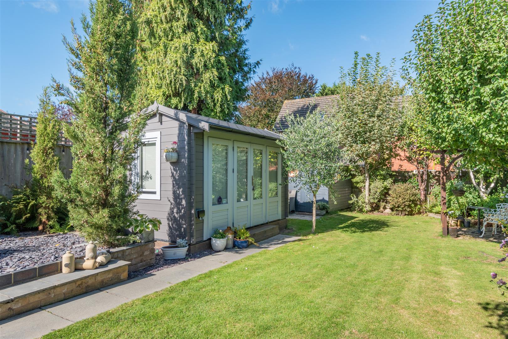 The outside space is equally appealing, with a meticulously maintained garden featuring mature flower beds, a patio area ideal for outdoor dining and a versatile summer house which offers the perfect solution for those working from home. Additional highlights include a driveway with ample off-road parking for a number of vehicles and a useful basement room which is currently being used as an office.