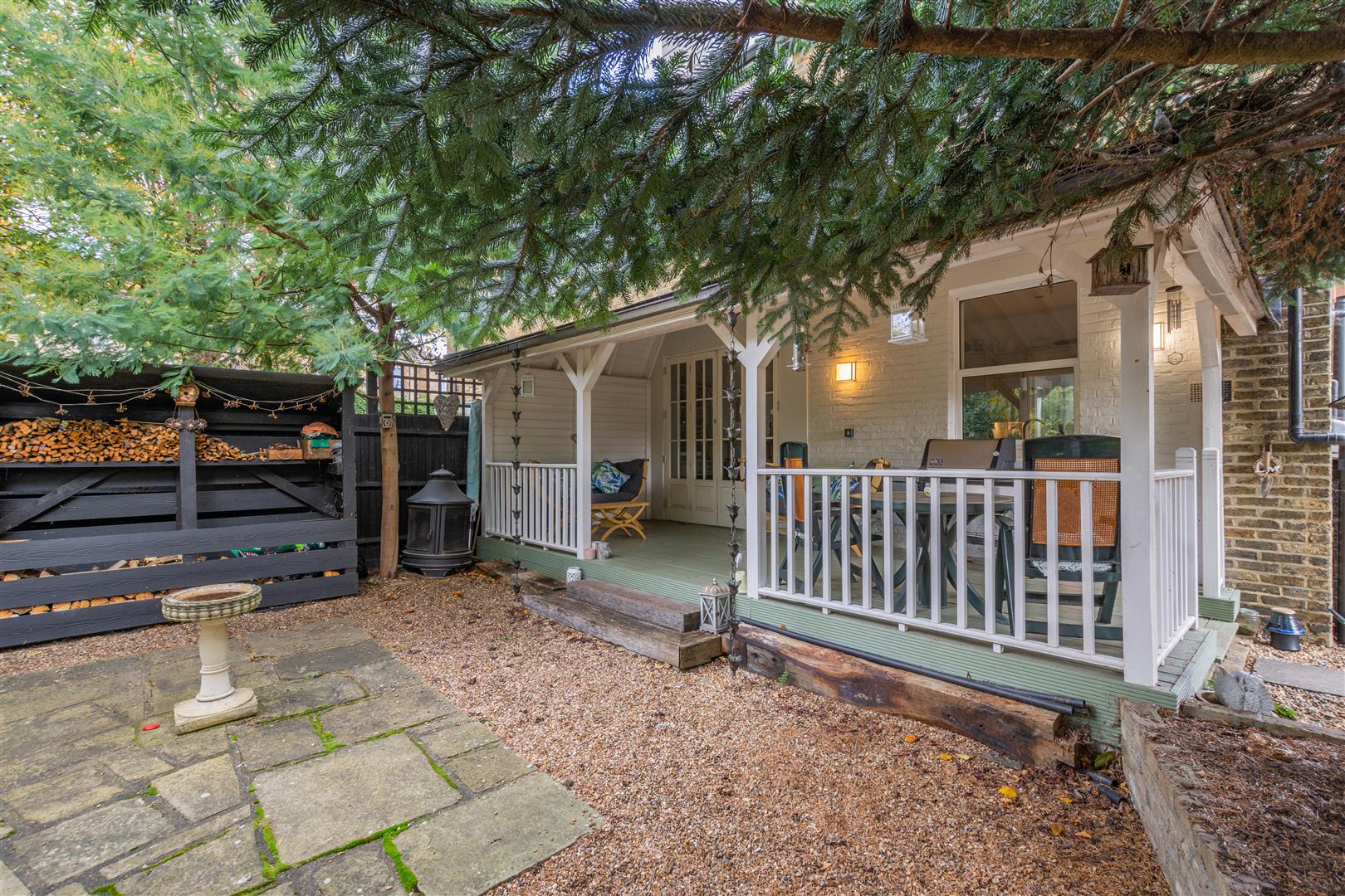 Outside, the south-facing garden is a true highlight, enjoying a large covered entertaining veranda, a tranquil pond, and a versatile studio-perfect as a home office, creative space, or guest retreat. The frontage offers secure gated parking and access to a garage with additional loft storage.