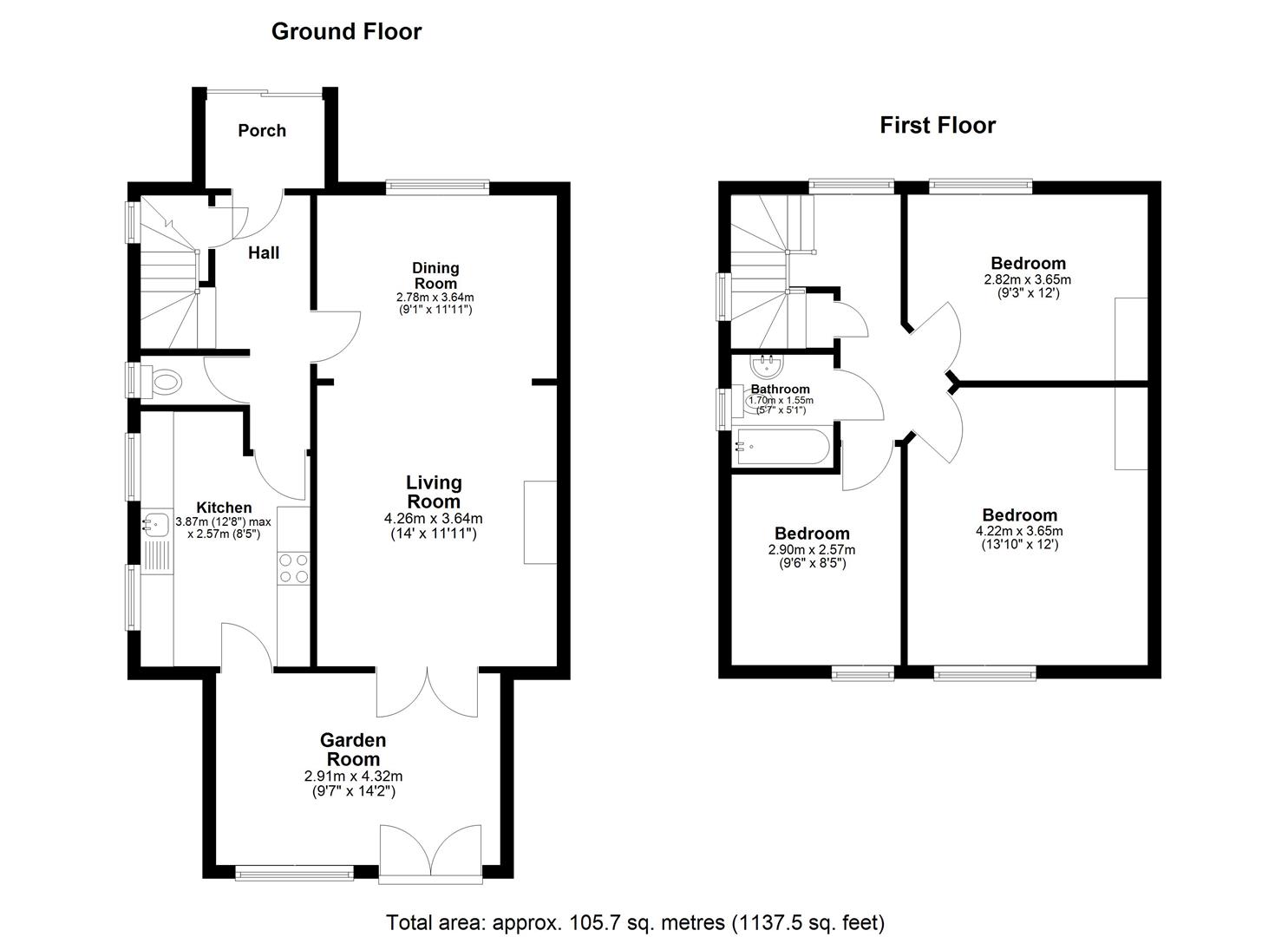 Bedroom Two - 3.66m x 2.82m (12' x 9'3) -