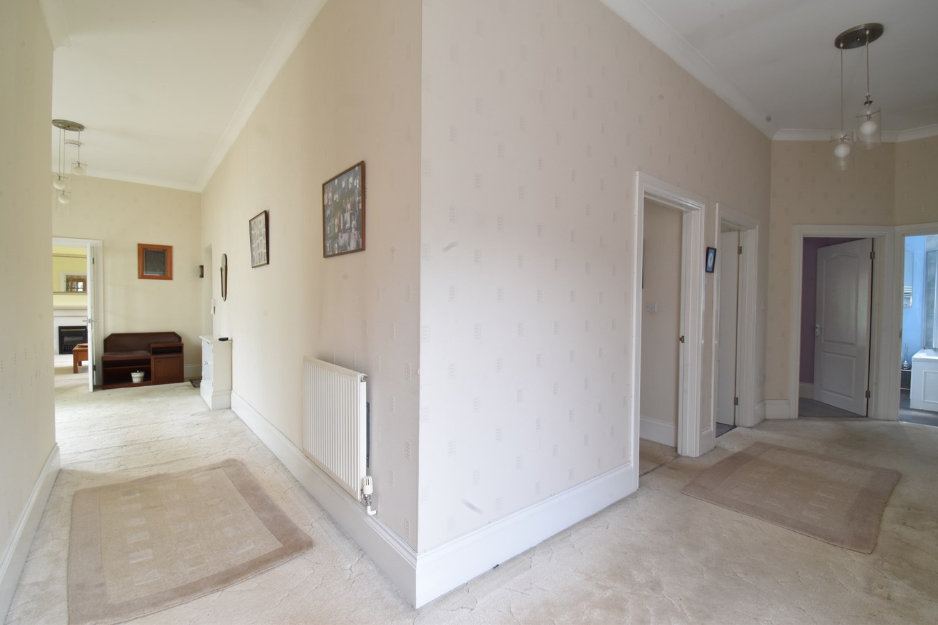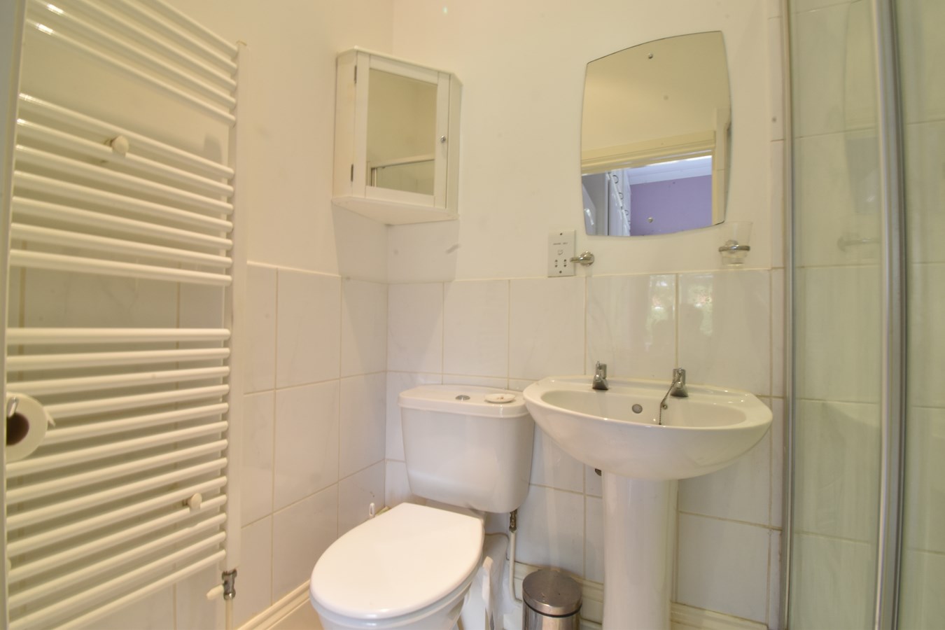 Suite comprising of low level WC, pedestal sink and shower. Heated towel rail. Localised tiling. Tiled floor. Shaver point. Extractor. Recess lighting.