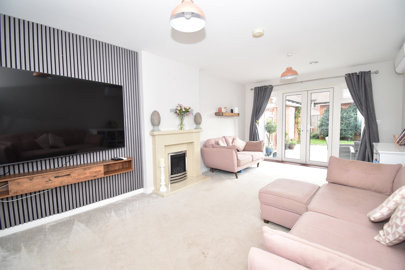 19' 9" x 11' 5" (6.02m x 3.48m) Double glazed bay window to front. Double glazed patio doors to rear onto garden. Electric fire and fireplace surround. TV point. BT point. Two radiators. Air conditioning unit. Fitted carpet. Air filter.
