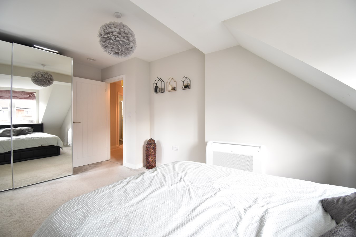 Radiator. Fitted carpet. Loft hatch. Cupboard housing water cylinder.