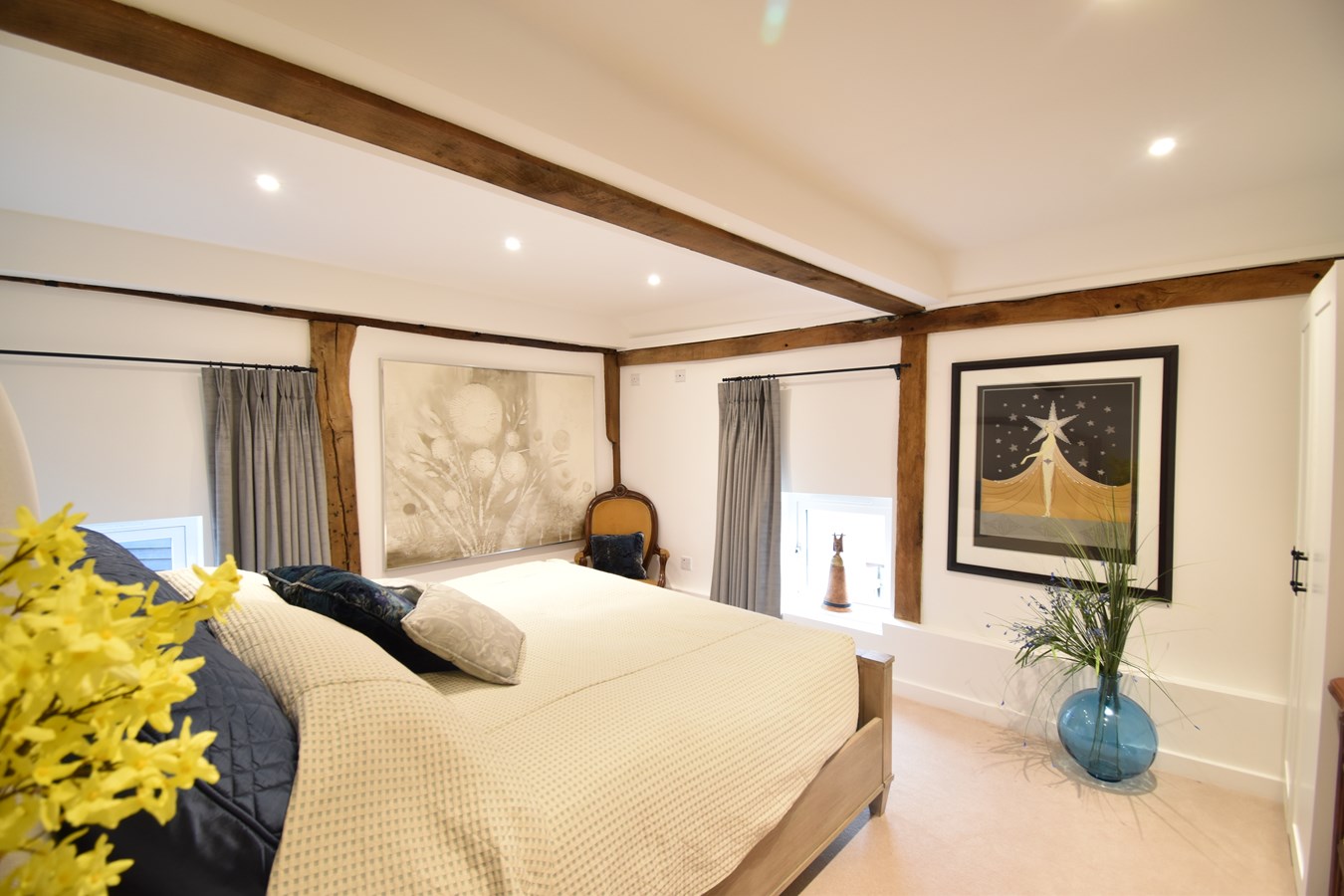 20' 8" x 18' 7" (6.30m x 5.66m) Double glazed window to both sides and rear. Exposed beams. Three radiators. Thermostat. BT & TV point. Vaulted ceiling. Partitioned section for dressing area with shelving and hanging rails.