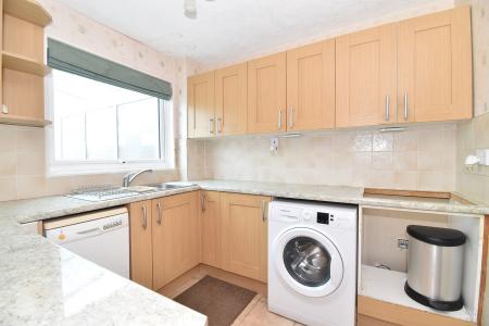 8' 6" x 8' 2" (2.59m x 2.49m) Double glazed window to rear. Range of base and wall units. One and a half bowl sink unit and drainer. Space for washing machine, slimline dishwasher and fridge. Localised tiling. Tiled floor.