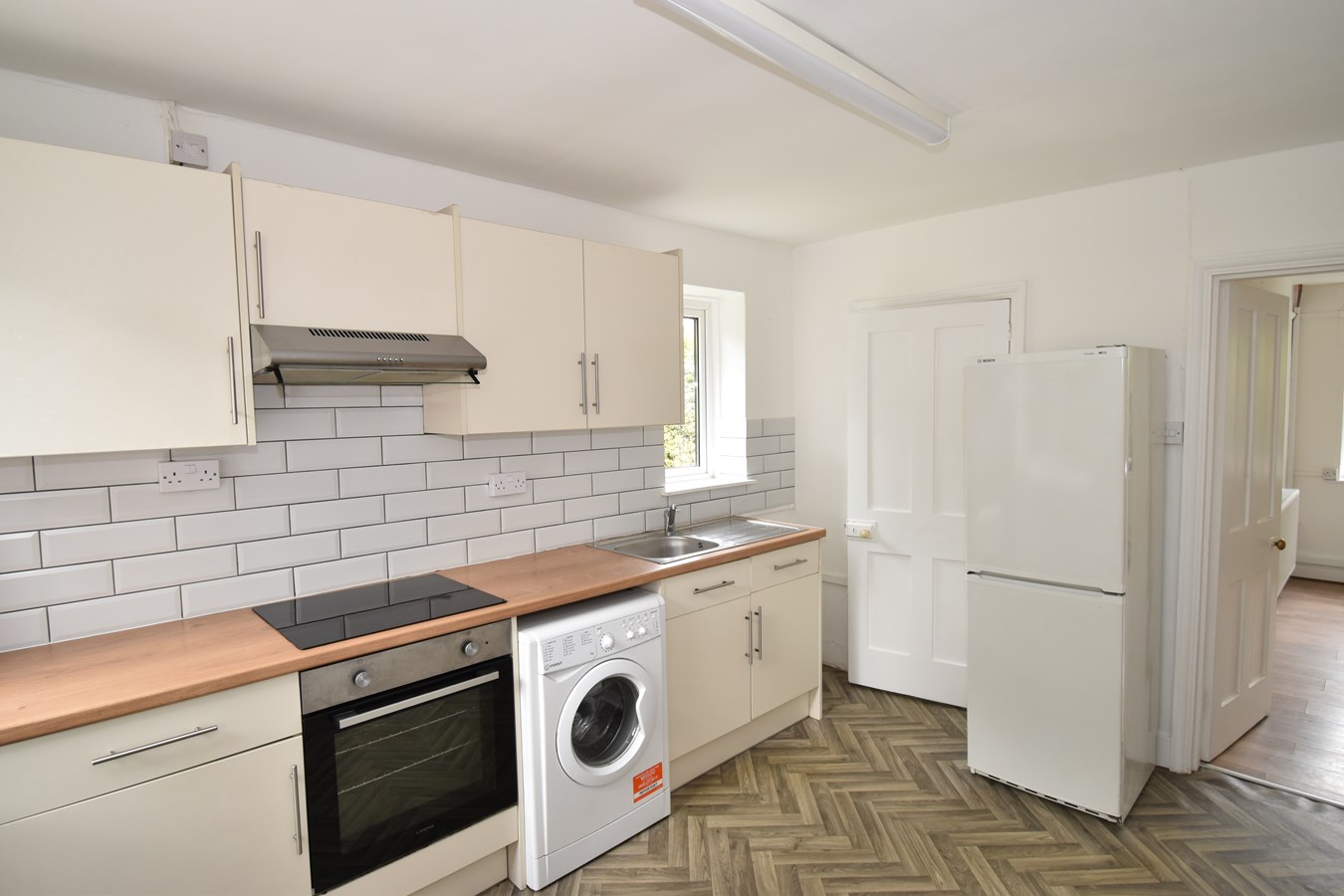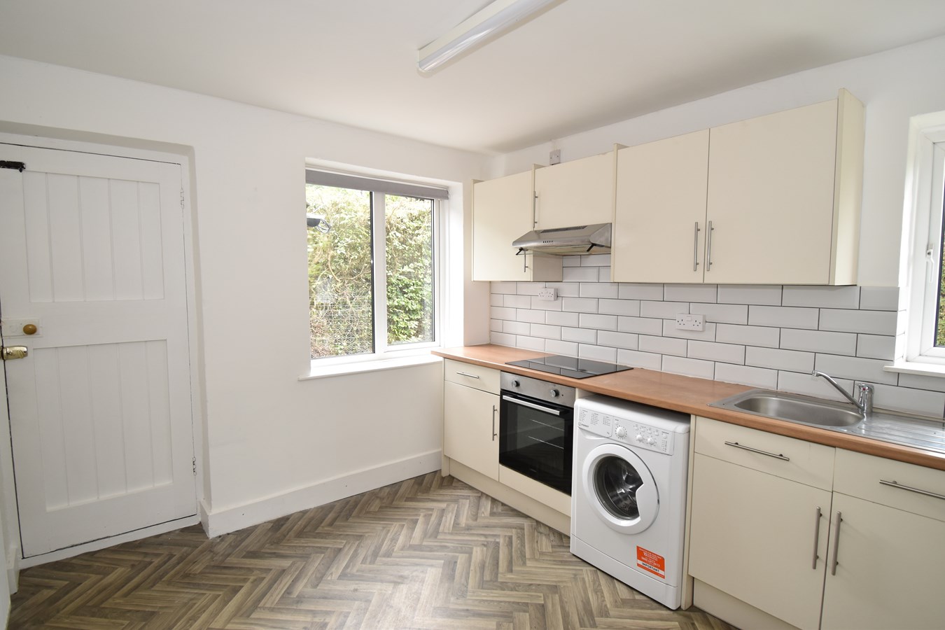 11' 10" x 10' 0" (3.61m x 3.05m) Double glazed window to side and rear. Door to outbuilding. Range of base and wall units. Stainless steel single bowl sink unit. Electric oven and hob with extractor over. Washing machine. Fridge/freezer. Radiator. Vinyl floor. Small recess to understairs space. Door to walk in pantry with double glazed window to rear and shelving. Vinyl flooring.