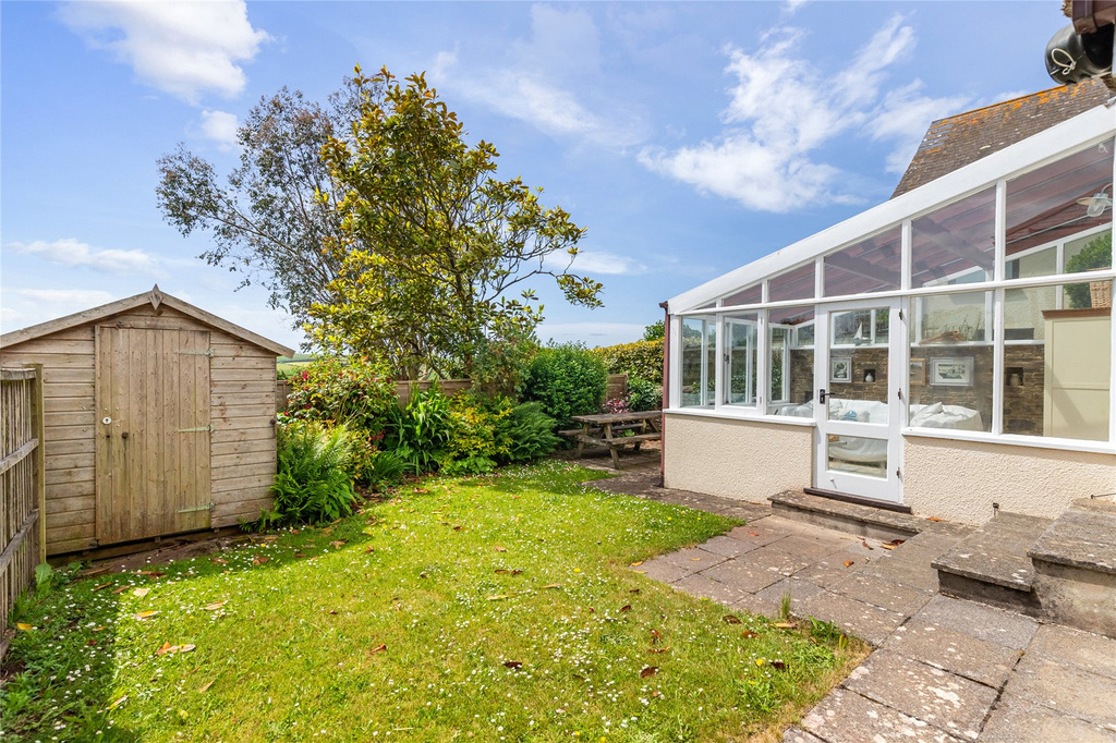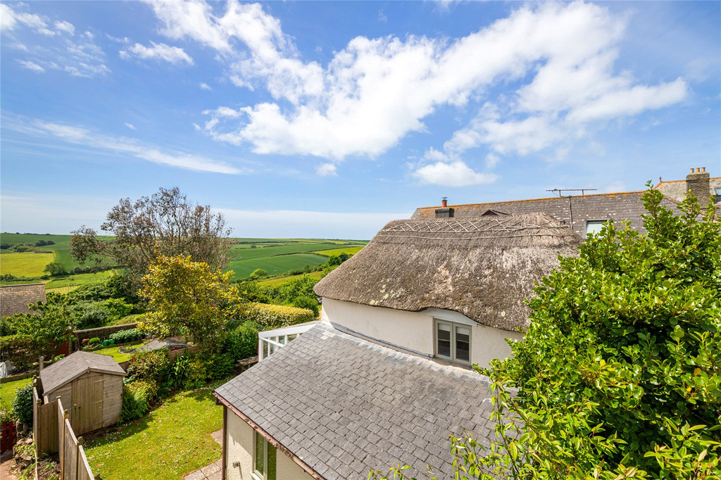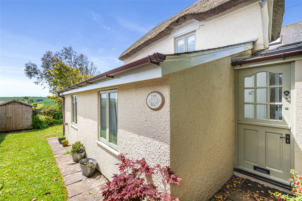 FOR SALE BY AUCTION UNLESS PREVIOUSLY SOLD Malborough boasts a delightful collection of thatched cottages, with The Bolt Cottage standing out as one of the most charming. Offering generous living spaces, it includes two reception rooms and a bright, south-facing conservatory. The cottage is beautifully presented throughout, retaining an abundance of character with features such as a stone-flagged dining room floor, beamed ceilings, and a traditional stable door. The property comprises three bedrooms—two located on the first floor, and a third conveniently situated on the ground floor alongside the family bathroom. The cottage is nestled within picturesque gardens, complemented by a charming patio area that can be accessed from both the conservatory and the sitting room. A convenient shed provides additional storage space.