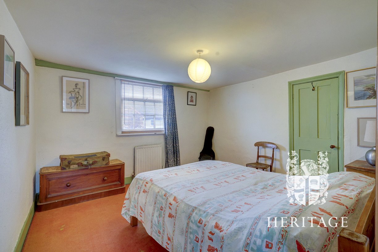 The ground floor of the main house unfolds across three characterful reception rooms. The lounge is light-filled and welcoming, enhanced by a broad bay window and chimney designed to accommodate a log-burning stove. The dining hall offers flexibility, with access both to the former shop and the rear courtyard, making it an excellent space for family gatherings or entertaining. A former artist’s studio now serves as a charming dining or utility room, complete with an exposed brick chimney, dual picture windows, and access to the courtyard.