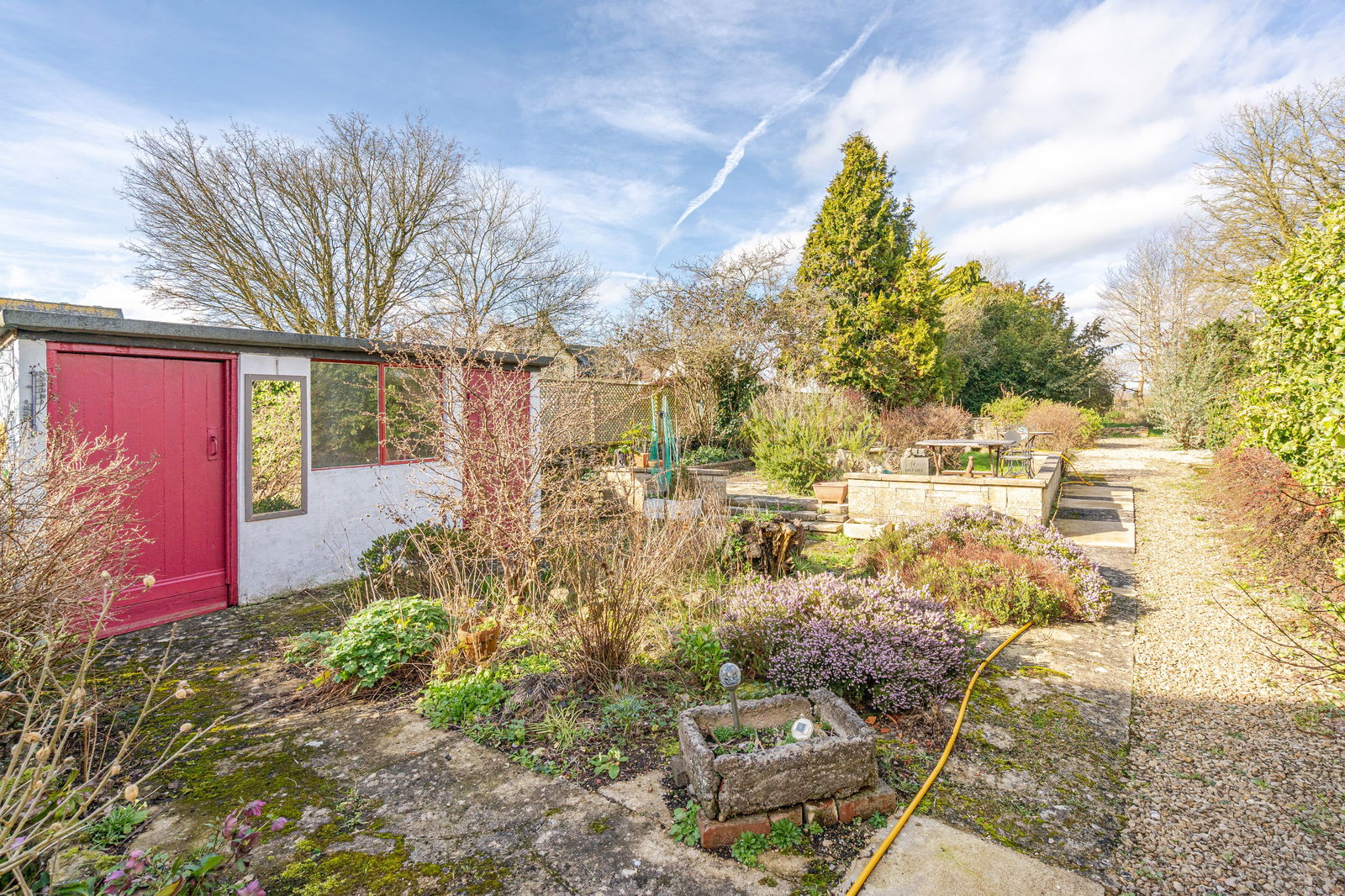 - Private parking and outbuildings