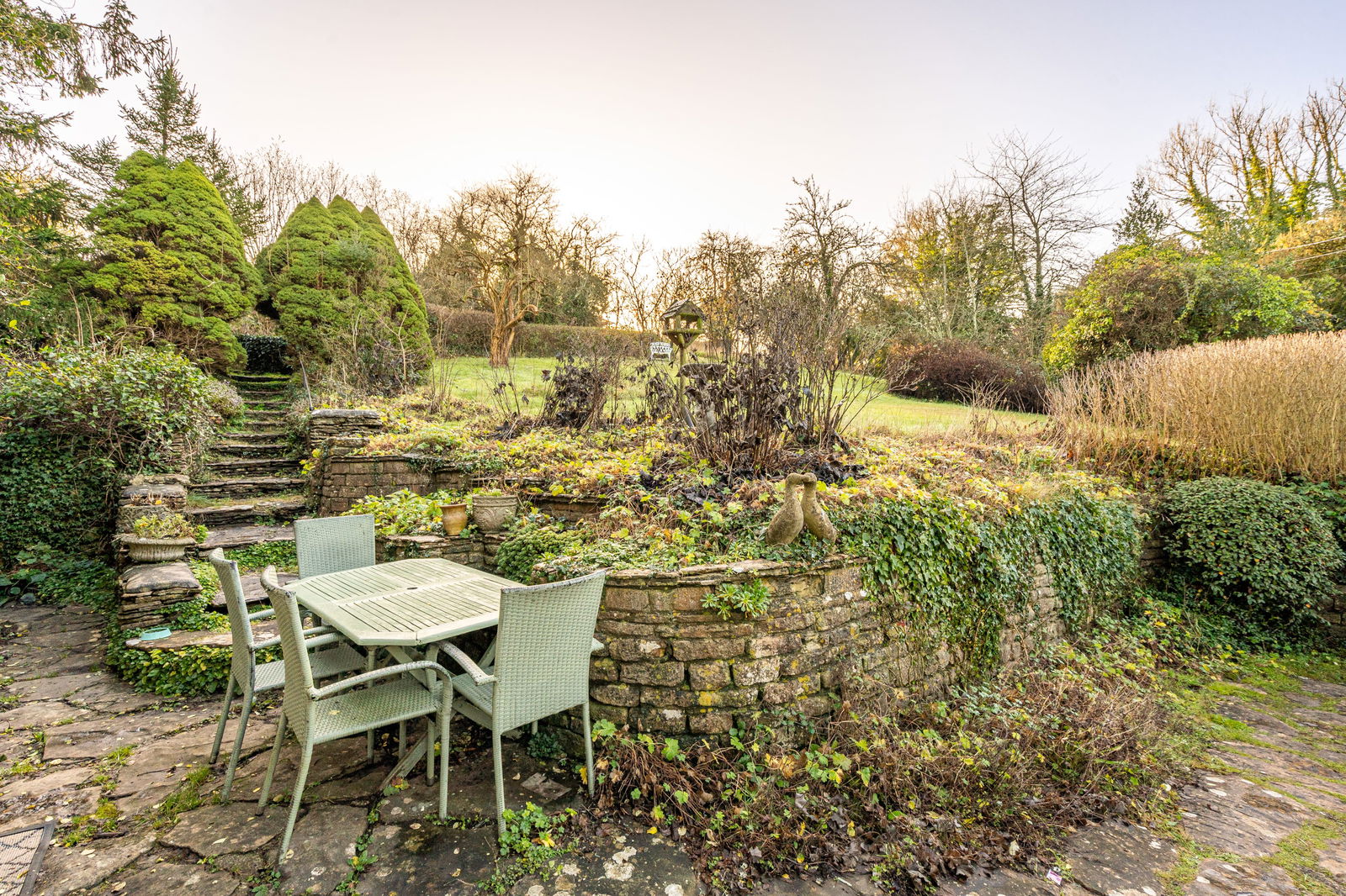 - Mature gardens and orchard