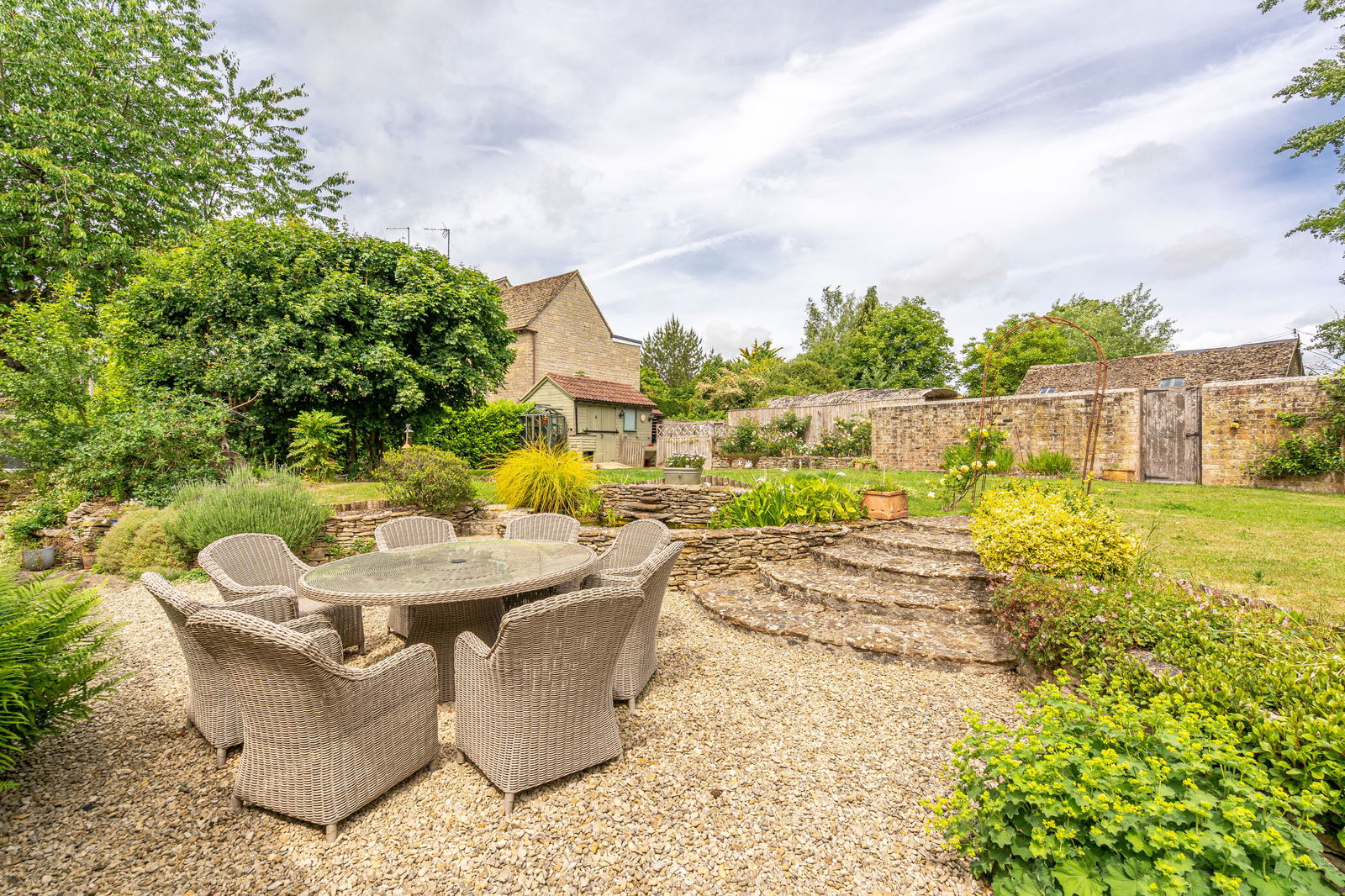 The cottage is screened behind quaint Cotswold stone walling enclosing the front lawn. The rear garden is of a good-size and also benefits from a great degree of security. The garden has been landscaped with gravelled and paved seating terraces, and steps up to a large lawn beside a delightful pond. There is a gated driveway to the side of the cottage which can provide off-street parking, and a shed and log store, which provide useful storage.