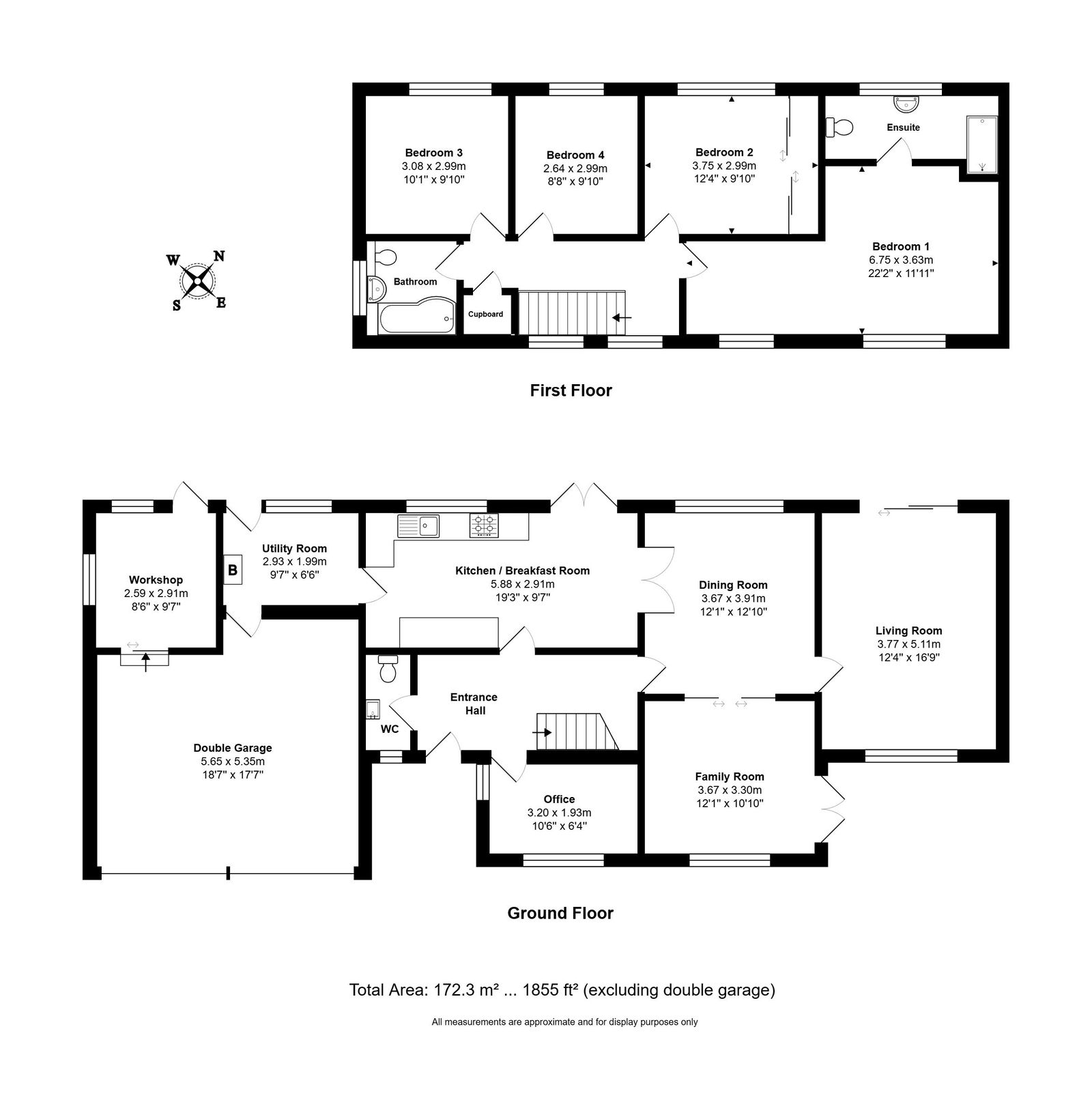 Externally, the front of the property features a paved block driveway, providing ample off-street parking and leading to an attached double garage. At the rear of the garage is a workshop, adding further practical space. The front garden is laid to lawn, bordered by established shrubs and trees, ensuring privacy, with a path leading to a charming patio area complete with a pond. The rear garden is predominantly laid to lawn, and includes sleepers ready for a vegetable garden, and an additional patio area, perfect for enjoying the outdoors.